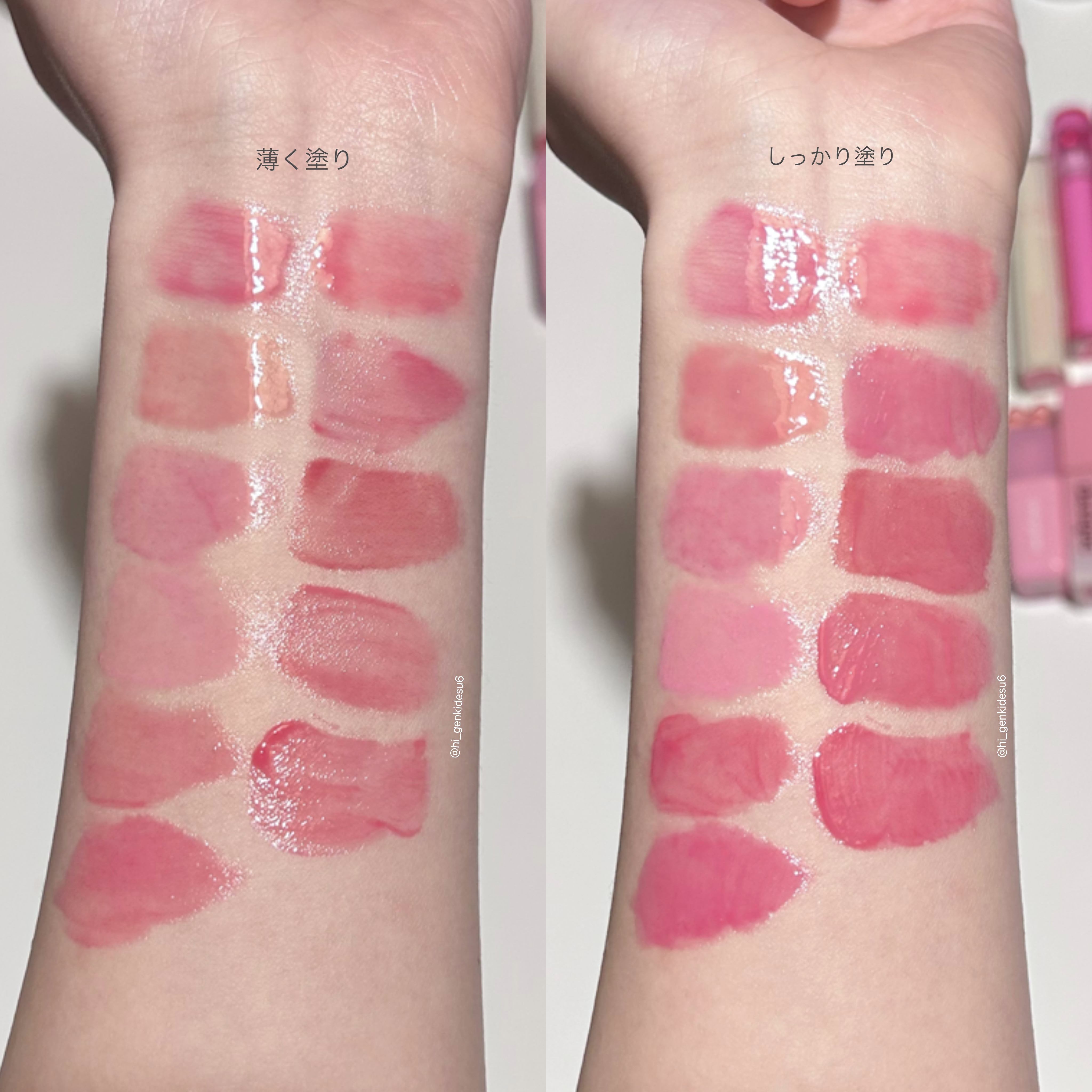ツヤは砂糖を煮つめたシロップみたいな甘〜い光沢感!! 密着力が高いので唇を「んまっ」と擦り合わせてもリップが動きにくい。 このティントはツヤも綺麗ですしカラバリも豊富で、沢山持っているリップの中でも一軍です👍🏻