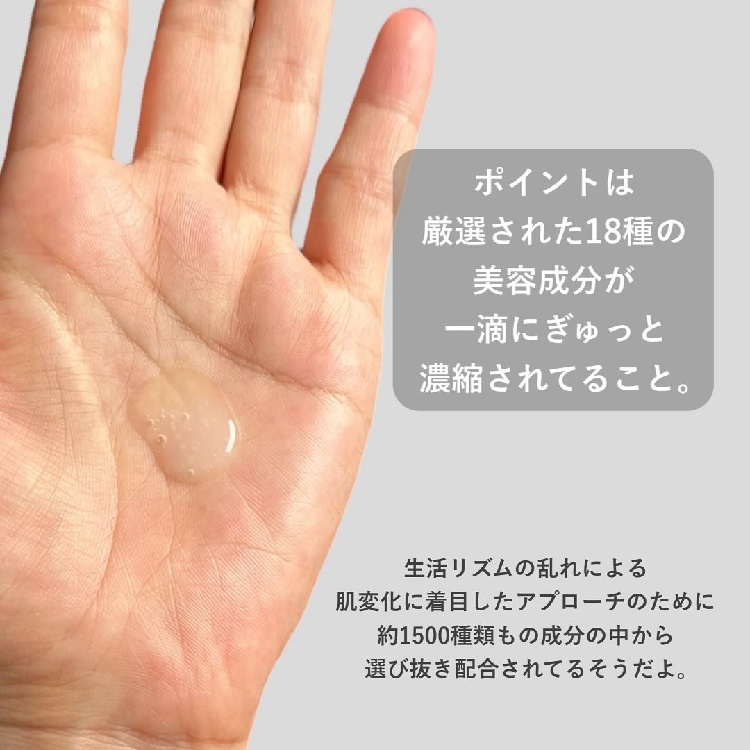 外気などによる乾燥ダメージだけでなく、睡眠不足などの日々によるお手入れ不足により起こる乾燥などの肌変化にもアプローチし、肌の明るさ・ハリ・なめらかさが備わった、うるおいが湧きあがるような肌へ導いてくれる究極のエイジングケア美容液✨ 使い方は朝、夜、化粧水で肌を整えてから、乳液またはクリームの前にお使用👍️ 年末年始何かと生活が乱れがちになるので、これで肌調子をあげていけたらいいな♪