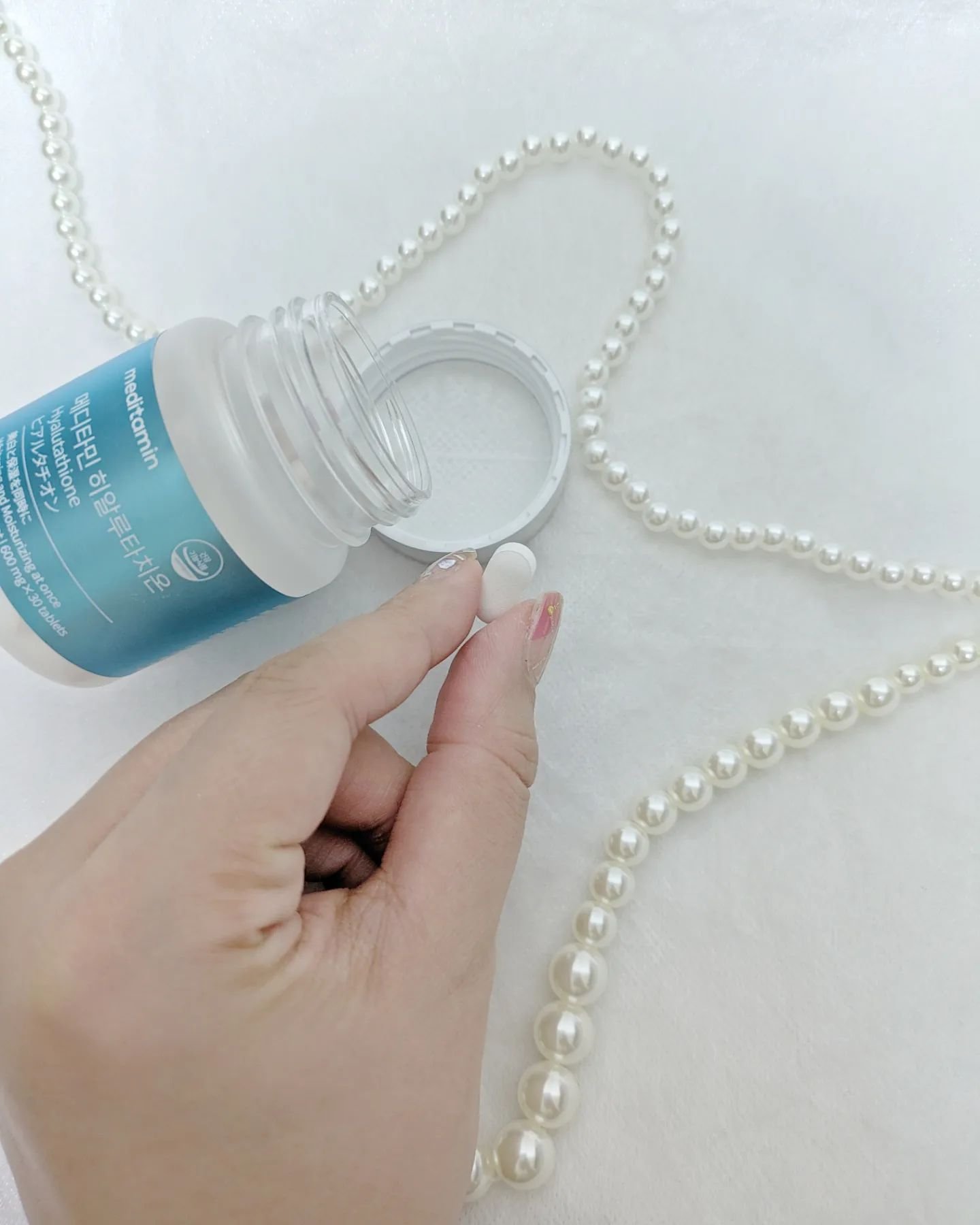 1日1粒ズボラでも続けやすいお手軽サプリ💓 メディタミン ヒアルタチオン 🤍ヒアルロン酸、グルタチオン、NMN。 🤍ビタミンC、Lーシスチン、エラスチン、コラーゲン、ミルクセラミド、ドクダミエキス粉末まで配合🙌 韓国発の美容サプリ🇰🇷 約1ヶ月分なので容器はけっこう小さめ!