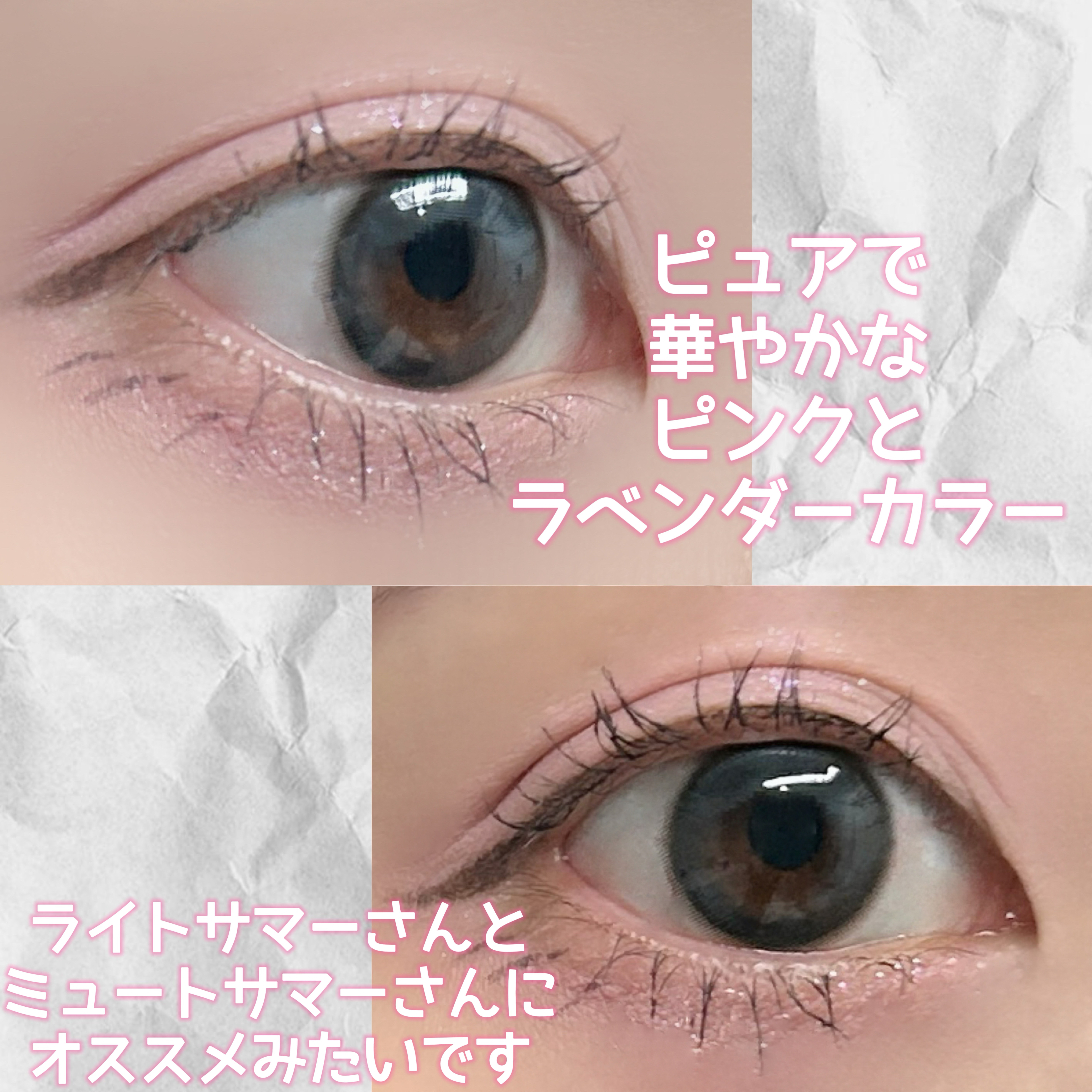 20色アイシャドウパレット ブルベ向きラベンダーカラー 粉質はサラサラしていて発色は淡いです。粉飛びが少し気になるのでアイシャドウベースがあった方が良さそうです。 ナチュラルメイクもできますし お出かけの日のメイクもできます。