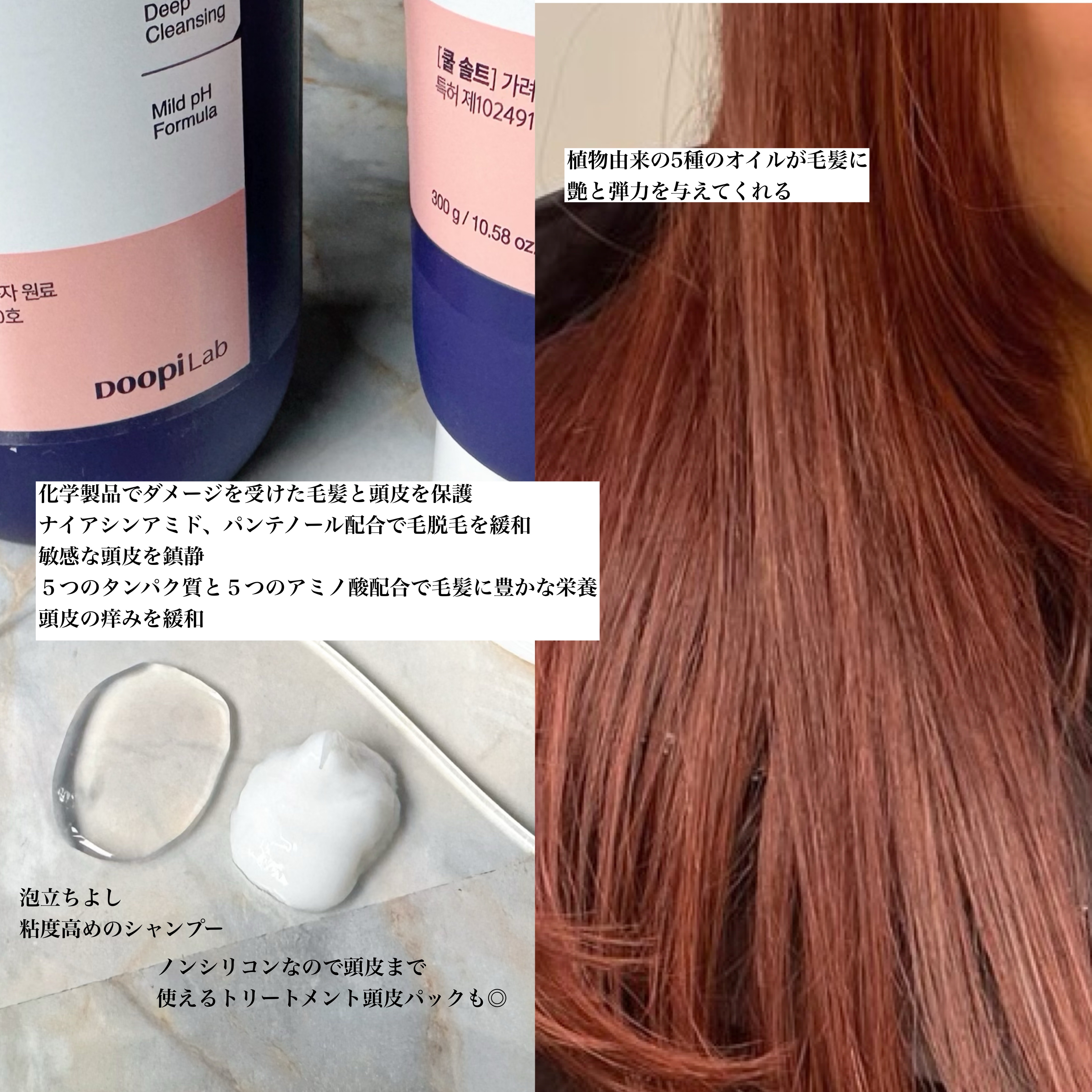 - ヘアケアラインは、頭皮も肌だ!ということで開発されました。 全商品に、クールソルト*が含まれており、頭皮を健やかに保ちます。 クールソルトは、3年の研究期間を経て、フランスの下ランド産の天然塩を液体状にし、ミネラル成分を最大限に活かせるように開発された、Dr.G独自の整肌成分です。敏感な肌を整え、頭皮をすっきりさせます。 シャンプー:パンテノール*やナイアシンアミド*が含まれており、ハリ・コシケアを助け、タンパク質*とアミノ酸*でキューティクルをケアします。さらに、3種のシカ成分*が頭皮を健やかに保ちます。 トリートメント:タンパク質*やアミノ酸*、ケラガード*で毛髪やキューティクルを守り、傷んだ髪を補修します。 ノンシリコンで、頭皮にも使え、頭皮をパックすることができます。 *整肌成分