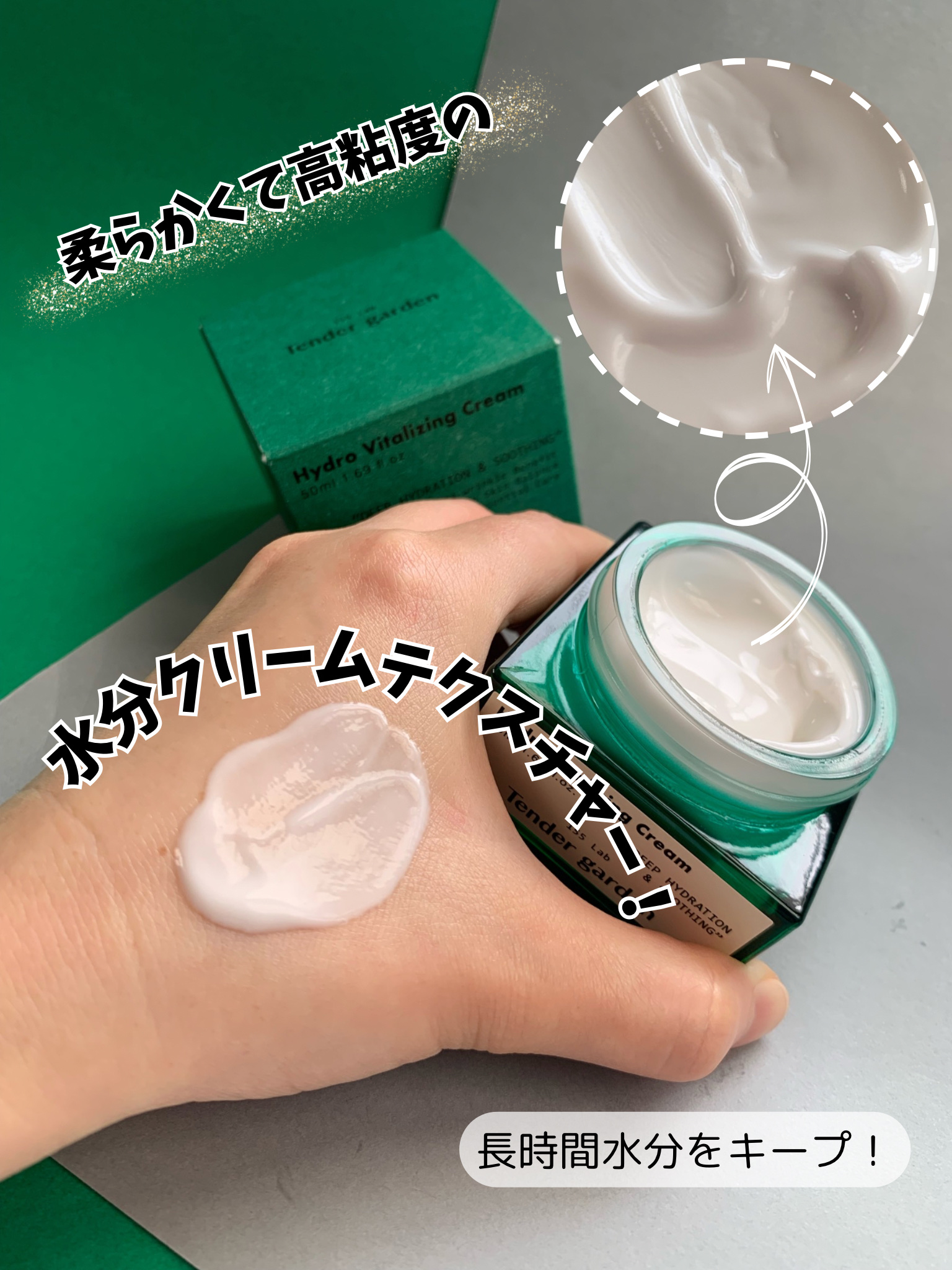 容器から溢れそうなほどたっぷりのクリーム 濃厚クリームで、硬めのテクスチャーだけど、伸びが良い。少したっぷりめにつけた方がお肌がしっとり。 一日中輝く水分バリア! ティーツリー由来の水分貴族クリーム。💚14種類の植物エキス成分が肌の保湿と鎮静、過剰な皮脂ケアに効果的。 なめらかなつけ心地の高保湿クリームが贈る透明感のある肌。💚なめらかで上質な質感の高粘度水分クリームテクスチャー。