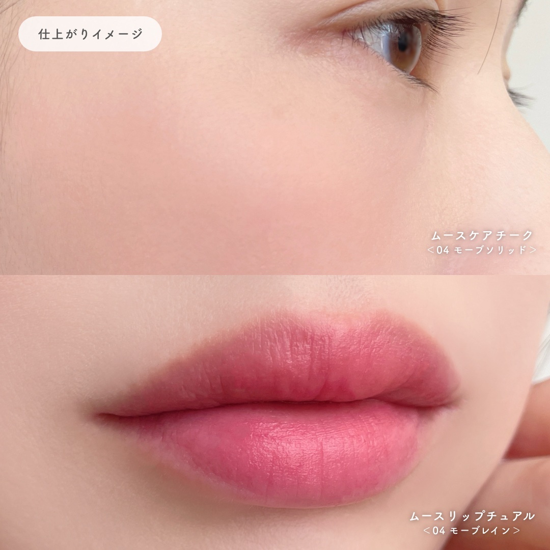 ムースリップチュアルから03ベアベージュは肌馴染みバッチリのローズベージュカラー 04モーブレイン冬にぴったりなモーヴピンク 可愛い…♥ ムースケアチーク04モーブソリッドは柔らかさのあるミュートなピンクカラー これ好きな人多そうだし、パーソナルカラー問わず使えそう! めちゃめちゃ可愛い新色チェックしてみてね ロフト、プラザへGO!