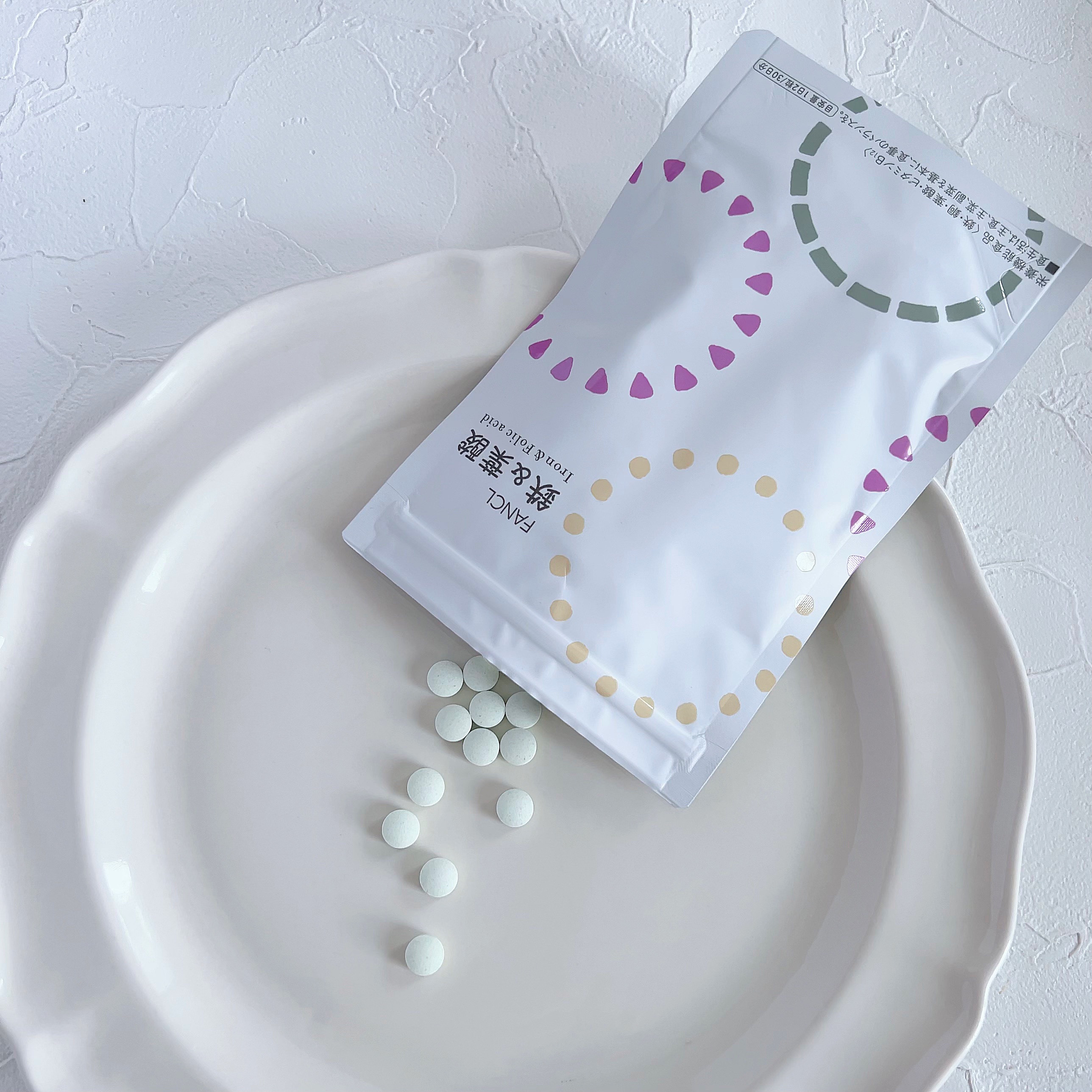 ファンケルの鉄&葉酸は1日2粒が目安。 粒も小さめで飲みやすく、手軽に飲めるので食事のついでに飲んでいます。 また、ドラッグストアなどで気軽に購入できるのも助かります。 2月16日より、ファンケルの通信販売、直営店舗、各種ECサイトでは、前向きなライフスタイルが続くよう想いを込めた幾何学模様の限定デザインパッケージのものも発売されています。