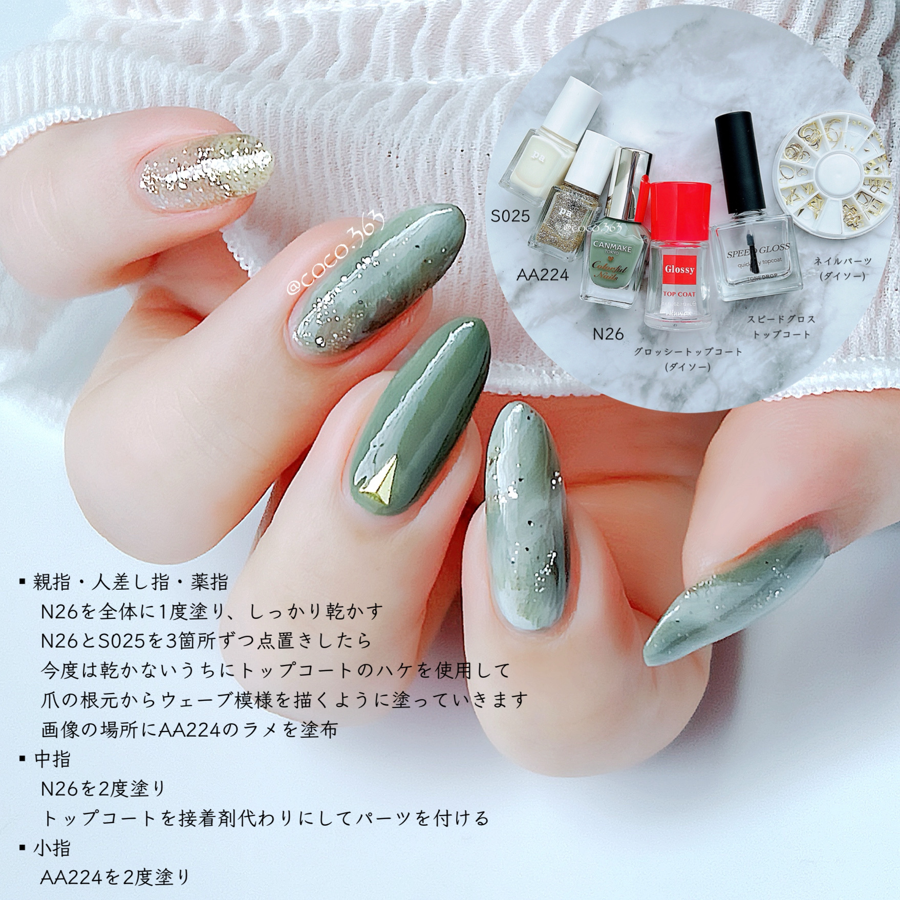 🍵抹茶ミルクネイル🍵抹茶ミルクをイメージしたネイルをしてみました!☆使用したネイル☆キャンメイク/カラフルネイルズN26レディカーキN29ミルクシロップpanailcollective/paネイルカラープレミアAA224#セルフネイル#プチプ...