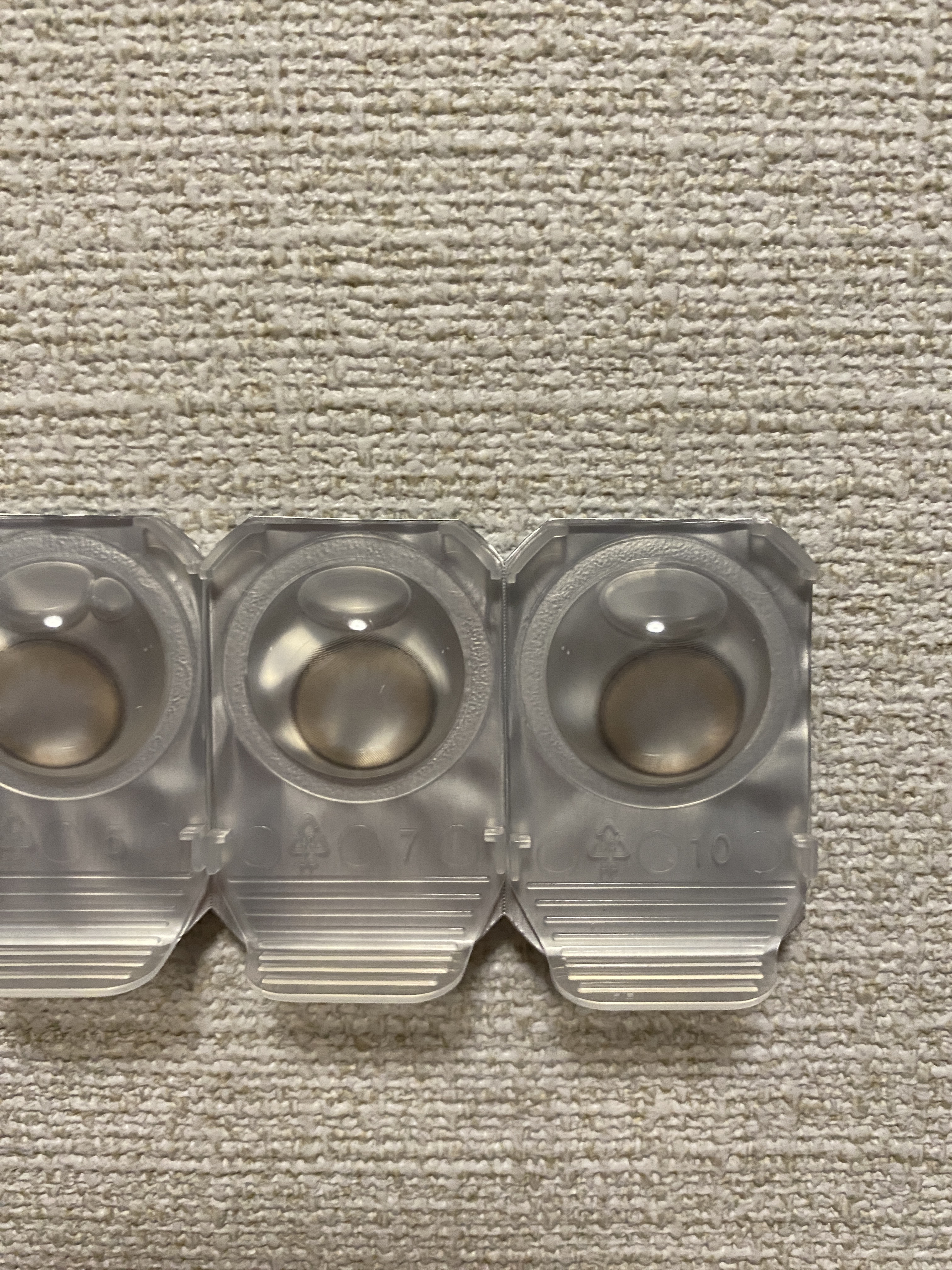 - レンズ素材成分:2-HEMA,EDMA 保存液:塩化ナトリウム 着色剤:アントラキノン系着色剤,フタロシアニン系着色剤,アゾ系着色剤,金属酸化物系着色剤