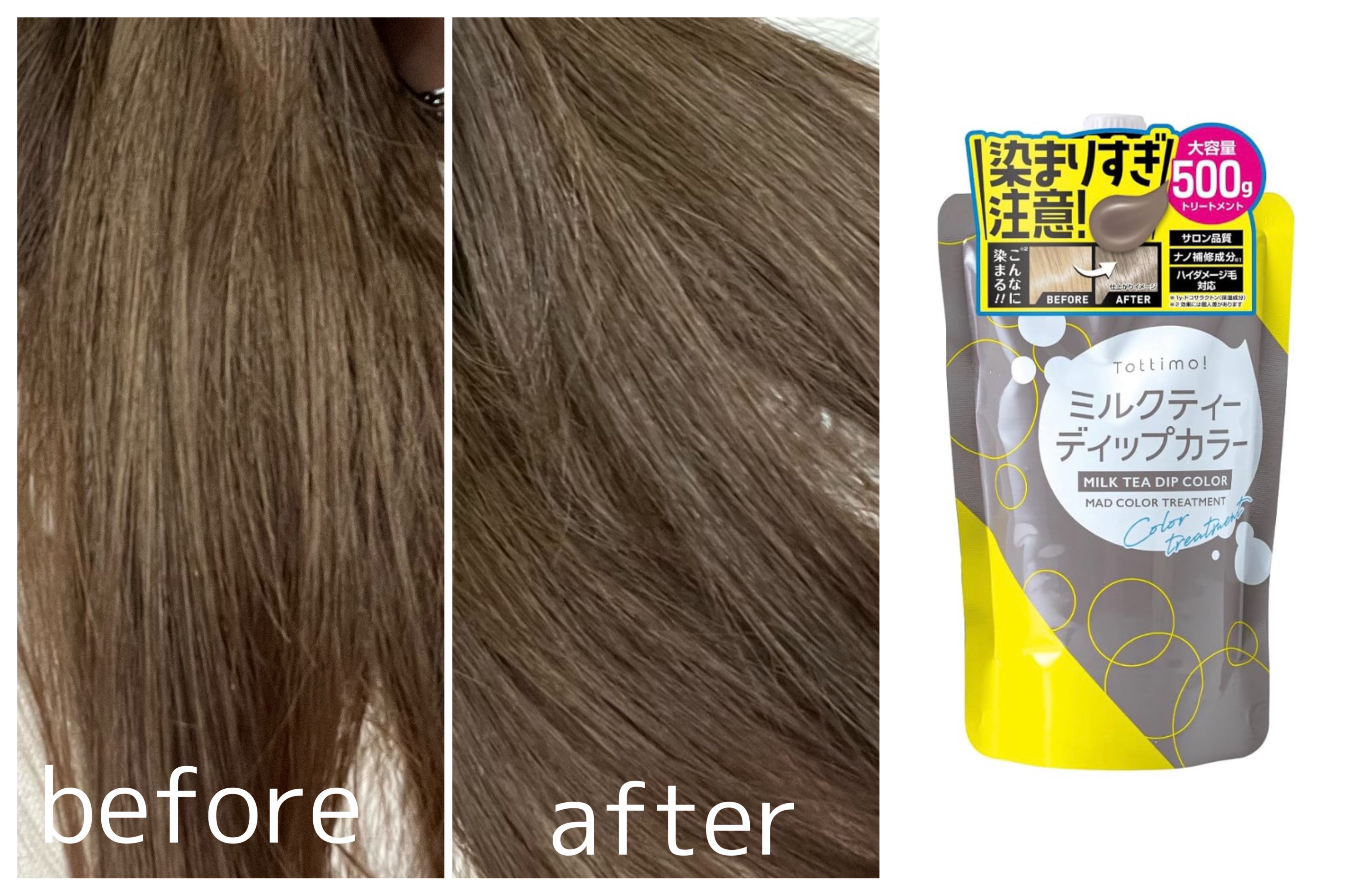 - <シルバー> 水、セテアリルアルコール、グリセリン、セバシン酸ジエチルヘキシル、水添ポリイソブテン、シクロペンタシロキサン、BG、アモジメチコン、ベヘントリモニウムクロリド、ポリクオタニウムー37、加水分解ケラチン(羊毛)、加水分解シルク、加水分解コラーゲン、γードコサラクトン、液状ラノリン、(加水分解シルク/PGプロピルメチルシランジオール)クロスポリマー、アルガニアスピノサ核油、シア脂、ハチミツ、アルギニン、トコフェロール、フィトステロールズ、カプリル酸グリセリル、乳酸、ポリクオタニウムー7、グアーヒドロキシプロピルトリモニウムクロリド、ステアルトリモニウムクロリド、ジステアリルジモニウムクロリド、ステアリン酸グリセリル、塩化Na、ビスセテアリルアモジメチコン、ジメチコン、プロパンジオール、イジプロパノール、エタノール、フェノキシエタノール、安息香酸Na、香料、(+/-)塩基性青99、塩基性茶16、塩基性赤76、塩基性紫2、HC青2 <パープル> 水、グリセリン、セタノール、パルミチン酸エチルヘキシル、ステアリルアルコール、ベヘントリモニウムクロリド、ジメチコン、白金、γ-ドコサラクトン、シア脂、ハチミツ、アルガニアスピノサ核油、フィトステロールズ、アルギニン、乳酸、PEG-90M、アモジメチコン、ステアルトリモニウムクロリド、ポリソルベート80、ジステアリルジモニウムクロリド、プロパンジオール、イソプロパノール、エタノール、フェノキシエタノール、香料、(+/-)塩基性青124、塩基性赤51、塩基性黄57、HC黄4、HC青2、塩基性紫2 <ピンク> 水、グリセリン、セタノール、パルミチン酸エチルヘキシル、ステアリルアルコール、ベヘントリモニウムクロリド、ジメチコン、白金、γ-ドコサラクトン、シア脂、ハチミツ、アルガニアスピノサ核油、フィトステロールズ、アルギニン、乳酸、PEG-90M、アモジメチコン、ステアルトリモニウムクロリド、ポリソルベート80、ジステアリルジモニウムクロリド、プロパンジオール、イソプロパノール、エタノール、フェノキシエタノール、香料、(+/-)塩基性青124、塩基性赤51、塩基性黄57、HC黄4、HC青2、塩基性紫2 <ミルクティー> 水、セテアリルアルコール、グリセリン、セバシン酸ジエチルヘキシル、水添ポリイソブテン、シクロペンタシロキサン、BG、アモジメチコン、ベヘントリモニウムクロリド、ポリクオタニウムー37、加水分解ケラチン(羊毛)、加水分解シルク、加水分解コラーゲン、γードコサラクトン、液状ラノリン、(加水分解シルク/PGプロピルメチルシランジオール)クロスポリマー、アルガニアスピノサ核油、シア脂、ハチミツ、アルギニン、トコフェロール、フィトステロールズ、カプリル酸グリセリル、乳酸、ポリクオタニウムー7、グアーヒドロキシプロピルトリモニウムクロリド、ステアルトリモニウムクロリド、ジステアリルジモニウムクロリド、ステアリン酸グリセリル、塩化Na、ビスセテアリルアモジメチコン、ジメチコン、プロパンジオール、イジプロパノール、エタノール、フェノキシエタノール、安息香酸Na、香料、(+/-)塩基性青99、塩基性茶16、塩基性赤76、塩基性紫2、HC青2