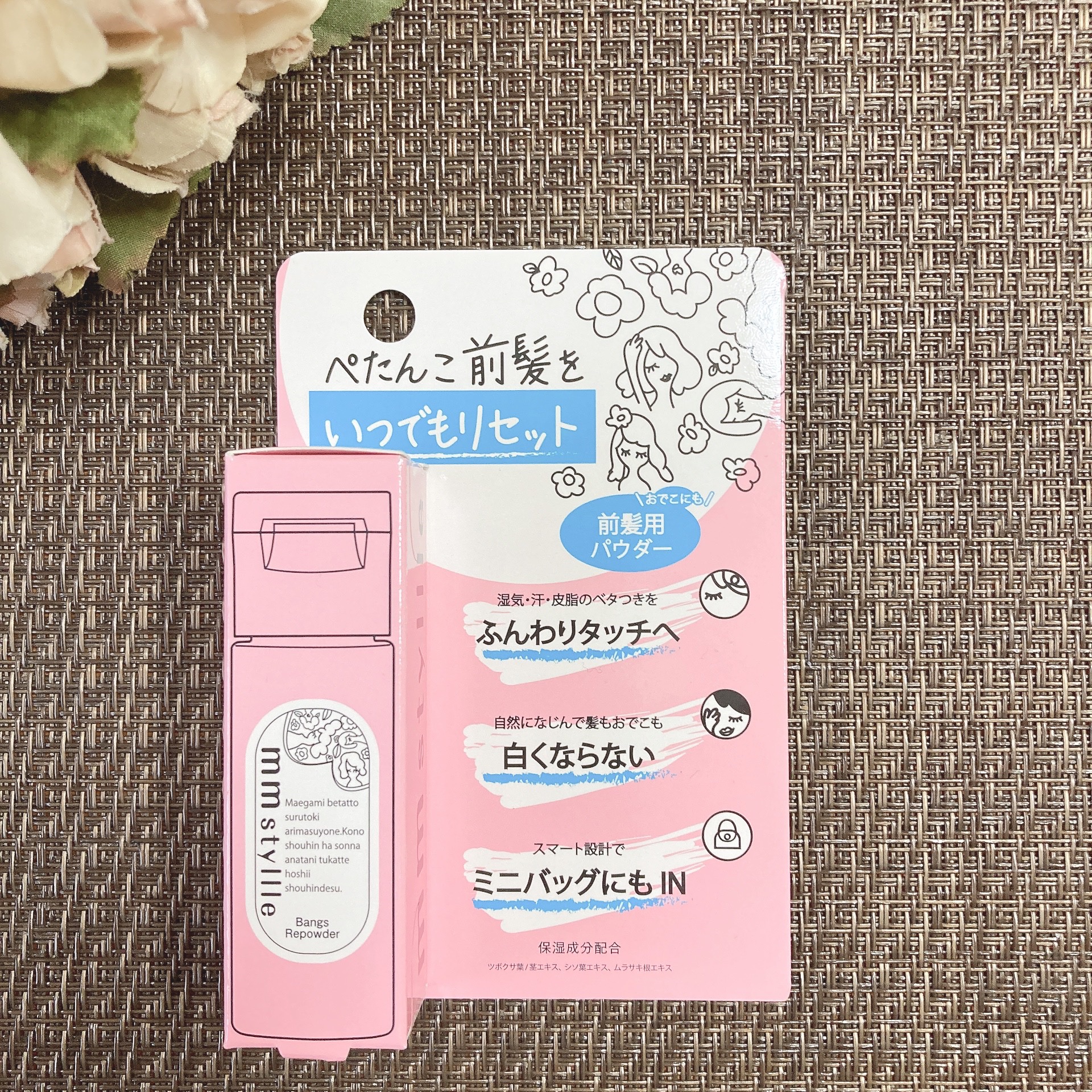 指で前髪を触るついでにふんわりをちょい足し。 ぺたんこ前髪をいつでもふんわり リセットしてくれるパウダーです。 サラサラなテクスチャーのパウダー。 スキンケアパウダーだから おでこに付いちゃってもOK。 持ち運び困らないスマート設計されたボトルはポーチに入れておきやすい大きさ😍