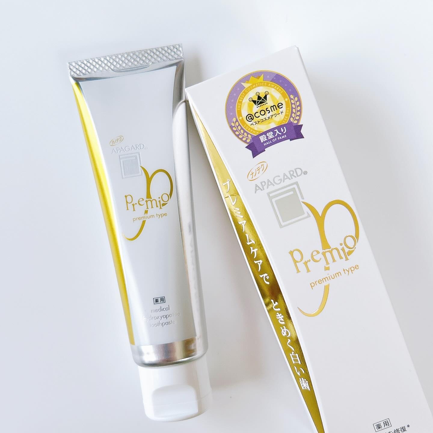 - 【医薬部外品】 独自成分「薬用ハイドロキシアパタイト」がエナメル質を整えてむし歯を予防。アパガードはエナメル質の健康を保つことで自然な白い歯に導く美白歯みがきブランド。アパガードプレミオは「薬用ハイドロキシアパタイト」を高配合(スタンダードタイプ比)。プレミアムケアでときめく白い歯に。 <ライトミント> ●サンギ独自の薬用成分ナノ粒子「薬用ハイドロキシアパタイト」を高配合したプレミアムタイプ。※Mプラス、スモーキン比 ●歯の再石灰化率、白色度もアップ。 ●歯垢を吸着除去し、歯のエナメル質の目に見えない傷を埋め、ミネラル欠損部(初期むし歯)を再石灰化するナノ<mHAP>の3つの働きで、むし歯を予防。 ●パール成分(加水分解コンキオリン液)配合。 <エクストラミント> ●強めのミントがお好みの方におススメ!ミント強めの「エクストラミント」フレーバー。 ●サンギ独自の薬用成分ナノ粒子「薬用ハイドロキシアパタイト」を高配合したプレミアムタイプ。※Mプラス、スモーキン比 ●歯垢を吸着除去、エナメル質表面の目に見えない傷を埋めてなめらかに、エナメル質から溶け出したミネラルを補給(再石灰化)する、という薬用ハイドロキシアパタイトの3つの作用でむし歯を予防。 ●パール成分(加水分解コンキオリン液)を追加したブライトニング処方