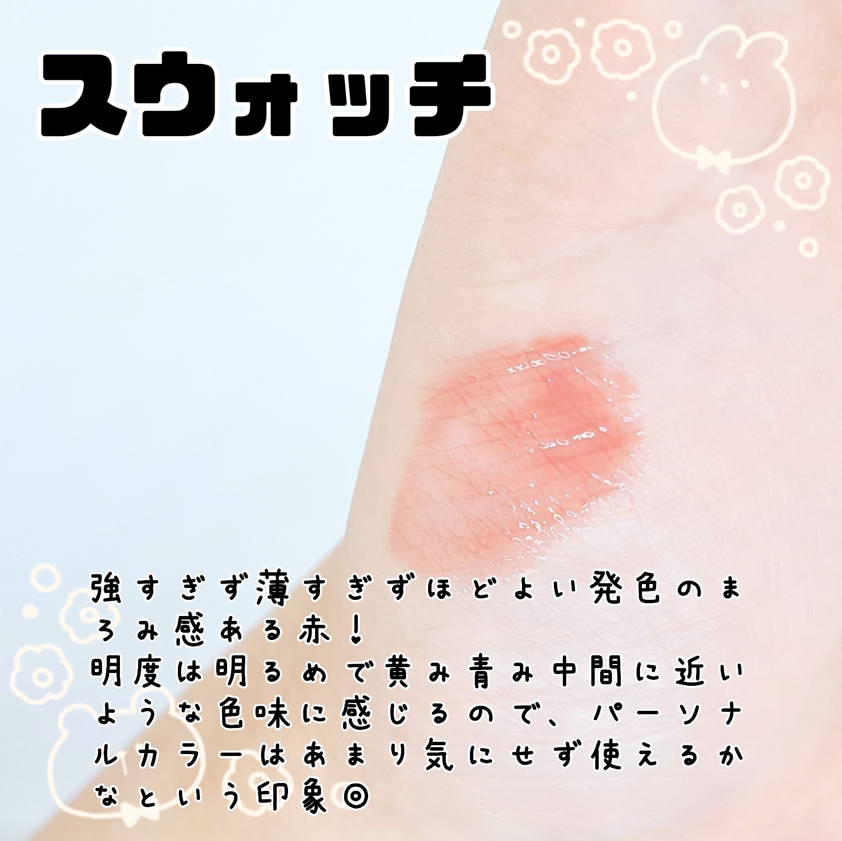 | 口紅・グロス・リップライナーランキング第61位 | ほんのりフルーツみたいな良い香りがします🍎 付けた感じのテクスチャーはぷるもち系ですね | 詳細を見る | |