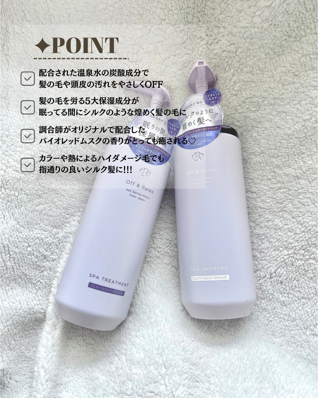 商品詳細情報Off&Relax OR スパ・シャンプー/ヘアトリートメント シルキーナイトリペア