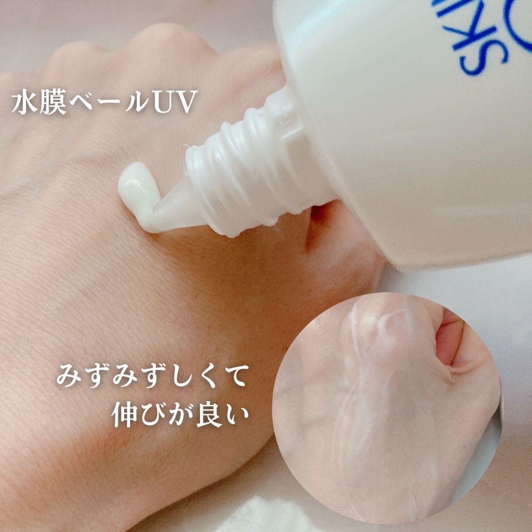 スキンアクアスーパーモイスチャージェル❁❁❁SPF50+PA++++の顔用日焼け止めが欲しくて購入しました☀️3枚目に液体の色を載せていますが実際に塗ると透明になりますので、トーンアップ効果はありません🍀ベタつきは気になりませんが、サラサラと...