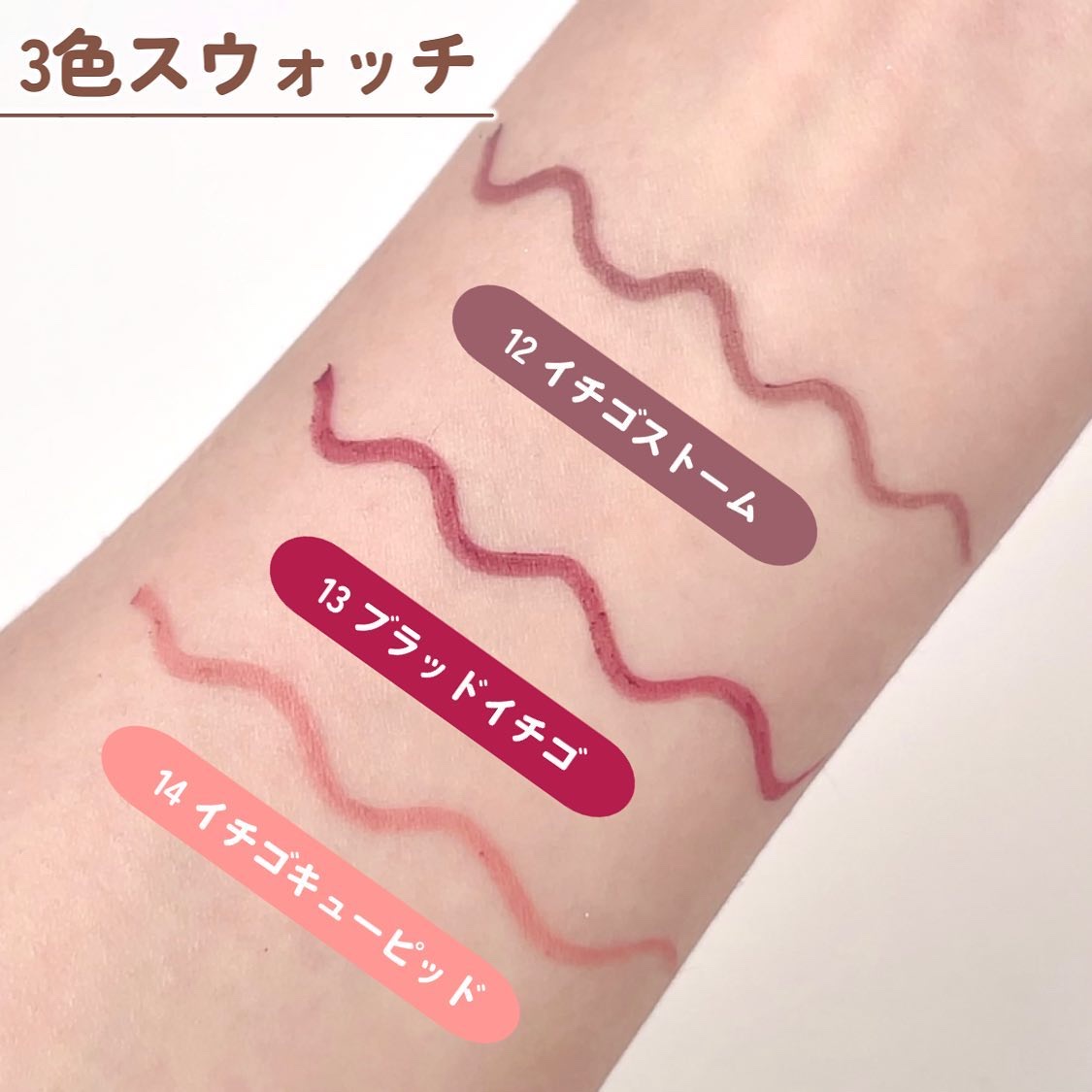 ピンク系が多いなと思ったので ピンクだけのスウォッチも最後に載せてるよ🌸 10.12.13.14は限定です❤️🩹 ♡01/ディープブラック ♡02/ミディアムブラウン ♡03/ダークブラウン ♡04/ガーネットバーガンディ ♡05/ビターキャラメル ♡06/フォギープラム ♡07/アズキブラウン ♡08/マッチャカーキ ♡09/ダージリンピンク ♡10/ココアグレージュ(限定) ♡11/クラウディーグレー ♡12/イチゴストーム(限定) ♡13/ブラッドイチゴ(限定) ♡14/イチゴキューピッド(限定)