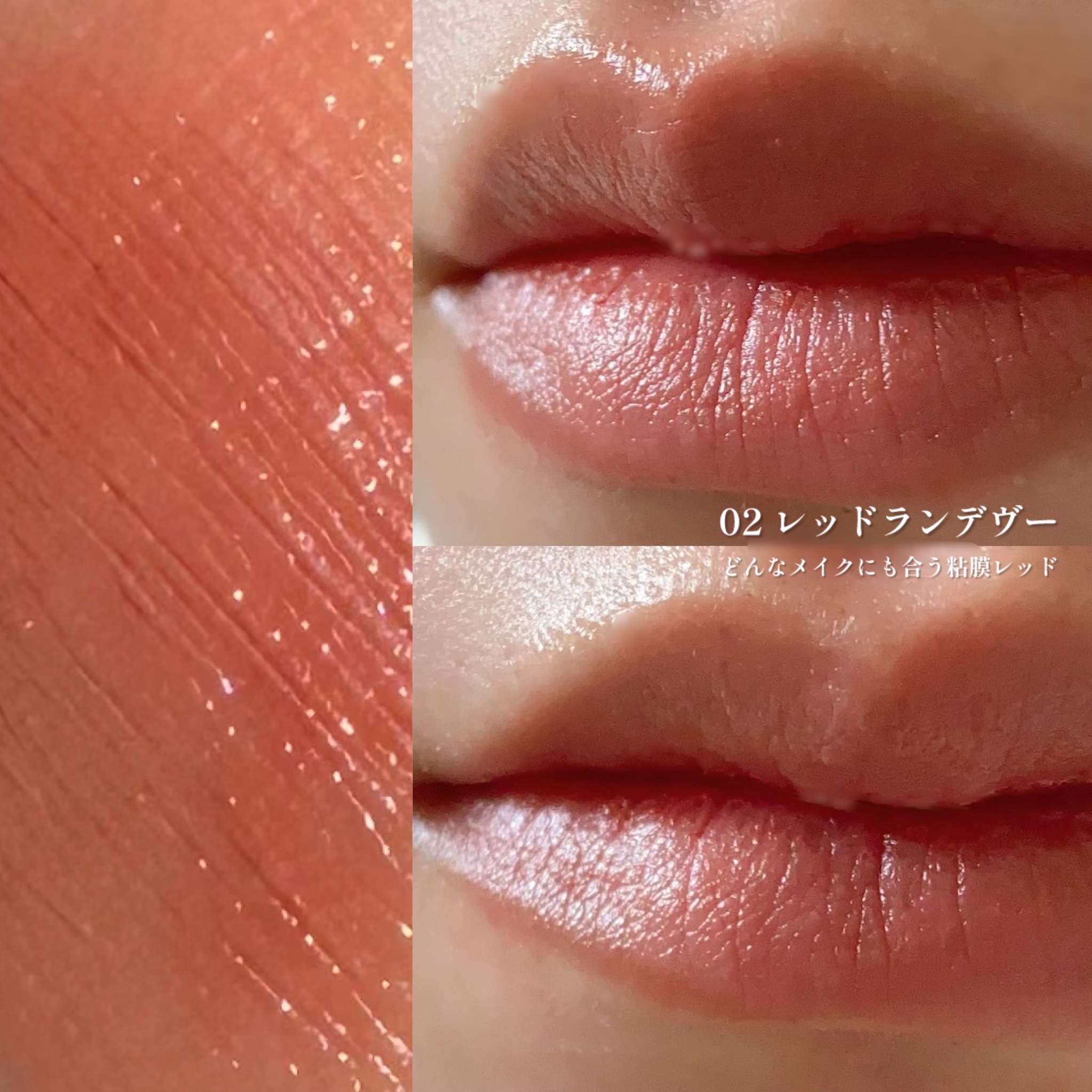 - <01 ハイコーラル> 水添ポリイソブテン、トリイソステアリン酸ポリグリセリル-2、リンゴ酸ジイソステアリル、イソノナン酸イソトリデシル、ジフェニルシロキシフェニルトリメチコン、ヒドロキシステアリン酸エチルヘキシル、合成ワックス、ヒドロキシステアリン酸水添ヒマシ油、ラウリルポリグリセリル-3ポリジメチルシロキシエチルジメチコン、マイクロクリスタリンワックス、ヒアルロン酸Na、カミツレ花エキス、ローヤルゼリーエキス、ダマスクバラ花エキス、水溶性コラーゲン、キャンデリラロウエステルズ、カルナウバロウ、トコフェロール、水酸化Al、テトライソステアリン酸ポリグリセリル-2、クエン酸、水、BG、クエン酸Na、フェノキシエタノール、酸化チタン、酸化鉄、黄5、黄4、赤202、橙201、赤223 <02 レッドランデヴー> 水添ポリイソブテン、トリイソステアリン酸ポリグリセリル-2、イソノナン酸イソトリデシル、ジフェニルシロキシフェニルトリメチコン、ヒドロキシステアリン酸エチルヘキシル、リンゴ酸ジイソステアリル、合成ワックス、ヒドロキシステアリン酸水添ヒマシ油、ラウリルポリグリセリル-3ポリジメチルシロキシエチルジメチコン、マイクロクリスタリンワックス、ヒアルロン酸Na、カミツレ花エキス、ローヤルゼリーエキス、ダマスクバラ花エキス、水溶性コラーゲン、キャンデリラロウエステルズ、カルナウバロウ、水酸化Al、テトライソステアリン酸ポリグリセリル-2、トコフェロール、クエン酸、水、BG、クエン酸Na、フェノキシエタノール、酸化チタン、酸化鉄、黄4、黄5、赤202、橙201、青1 <03 メロウモーヴ> 水添ポリイソブテン、トリイソステアリン酸ポリグリセリル-2、リンゴ酸ジイソステアリル、イソノナン酸イソトリデシル、ジフェニルシロキシフェニルトリメチコン、ヒドロキシステアリン酸エチルヘキシル、合成ワックス、ヒドロキシステアリン酸水添ヒマシ油、ラウリルポリグリセリル-3ポリジメチルシロキシエチルジメチコン、マイクロクリスタリンワックス、ヒアルロン酸Na、カミツレ花エキス、ローヤルゼリーエキス、ダマスクバラ花エキス、水溶性コラーゲン、キャンデリラロウエステルズ、カルナウバロウ、水酸化Al、テトライソステアリン酸ポリグリセリル-2、トコフェロール、クエン酸、水、BG、クエン酸Na、フェノキシエタノール、酸化チタン、酸化鉄、赤202、黄5、黄4、橙201、青1、赤223 <04 ヌーディシナモン> 水添ポリイソブテン、トリイソステアリン酸ポリグリセリル-2、イソノナン酸イソトリデシル、ジフェニルシロキシフェニルトリメチコン、ヒドロキシステアリン酸エチルヘキシル、リンゴ酸ジイソステアリル、合成ワックス、ヒドロキシステアリン酸水添ヒマシ油、ラウリルポリグリセリル-3ポリジメチルシロキシエチルジメチコン、マイクロクリスタリンワックス、ヒアルロン酸Na、カミツレ花エキス、ローヤルゼリーエキス、ダマスクバラ花エキス、水溶性コラーゲン、キャンデリラロウエステルズ、カルナウバロウ、水酸化Al、テトライソステアリン酸ポリグリセリル-2、トコフェロール、クエン酸、水、BG、クエン酸Na、フェノキシエタノール、酸化チタン、酸化鉄、黄4、黄5、赤202、赤201、橙201、青1 <05 ナイトチャイ> 水添ポリイソブテン、トリイソステアリン酸ポリグリセリル-2、イソノナン酸イソトリデシル、リンゴ酸ジイソステアリル、ジフェニルシロキシフェニルトリメチコン、ヒドロキシステアリン酸エチルヘキシル、合成ワックス、ヒドロキシステアリン酸水添ヒマシ油、ラウリルポリグリセリル-3ポリジメチルシロキシエチルジメチコン、マイクロクリスタリンワックス、ヒアルロン酸Na、カミツレ花エキス、ローヤルゼリーエキス、ダマスクバラ花エキス、水溶性コラーゲン、キャンデリラロウエステルズ、カルナウバロウ、トコフェロール、テトライソステアリン酸ポリグリセリル-2、水酸化Al、クエン酸、水、BG、クエン酸Na、フェノキシエタノール、酸化鉄、酸化チタン、赤202、黄4、赤201、青1、黄5、橙201、赤223