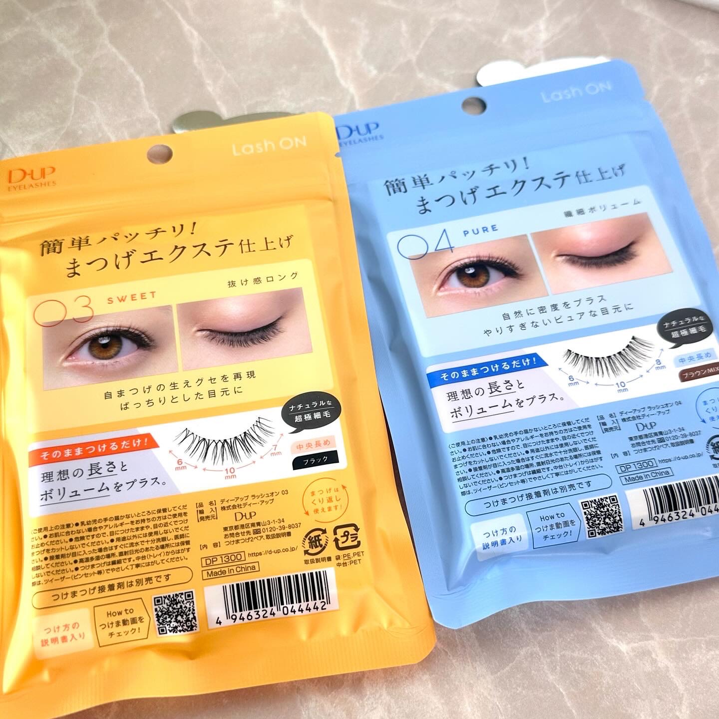 - “ワンタッチ”で理想のまつげが叶うつけまつげです。 最初から束になっているからそのままつけるだけで簡単に”束感まつげ”が完成する01・02、抜け感のあるデザインでサロンで施術した”まつげエクステ”のような仕上がりになる03~06の全6種。 自まつげが少なくても、短くても、生えグセがあっても、誰でもキレイなまつげに。ナチュラルな繊細毛で、自然かつ華やかな目元を演出します。