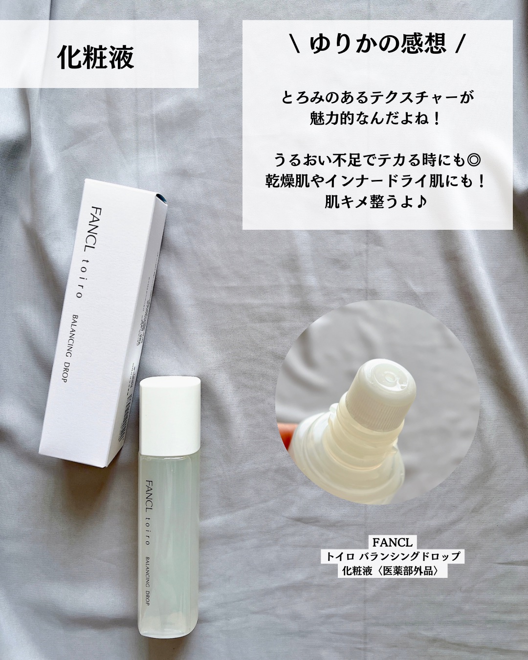FANCL無添加トイロうるおい・美白・肌あれ予防2週間キットバランシングドロップ(化粧水)バランシングミルク(乳液)toiroの2週間キットを購入してみました!その中から化粧水と乳液をレビューします❣️🤍トイロバランシングドロップ(化粧水)🤍...