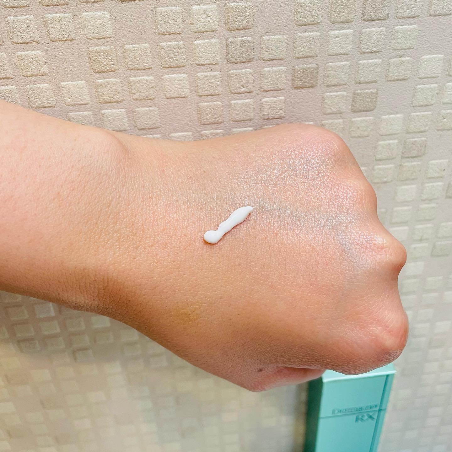 白色の柔らかなクリームで、とても伸びが良く、肌にすーっと流すことができます。 重ねて塗っても白くならないのも◎ モロモロも出にくい! そして、保湿力があるのに、ベタつかないところがすごい! みずみずしい感じで、軽いのにしっかり潤う。