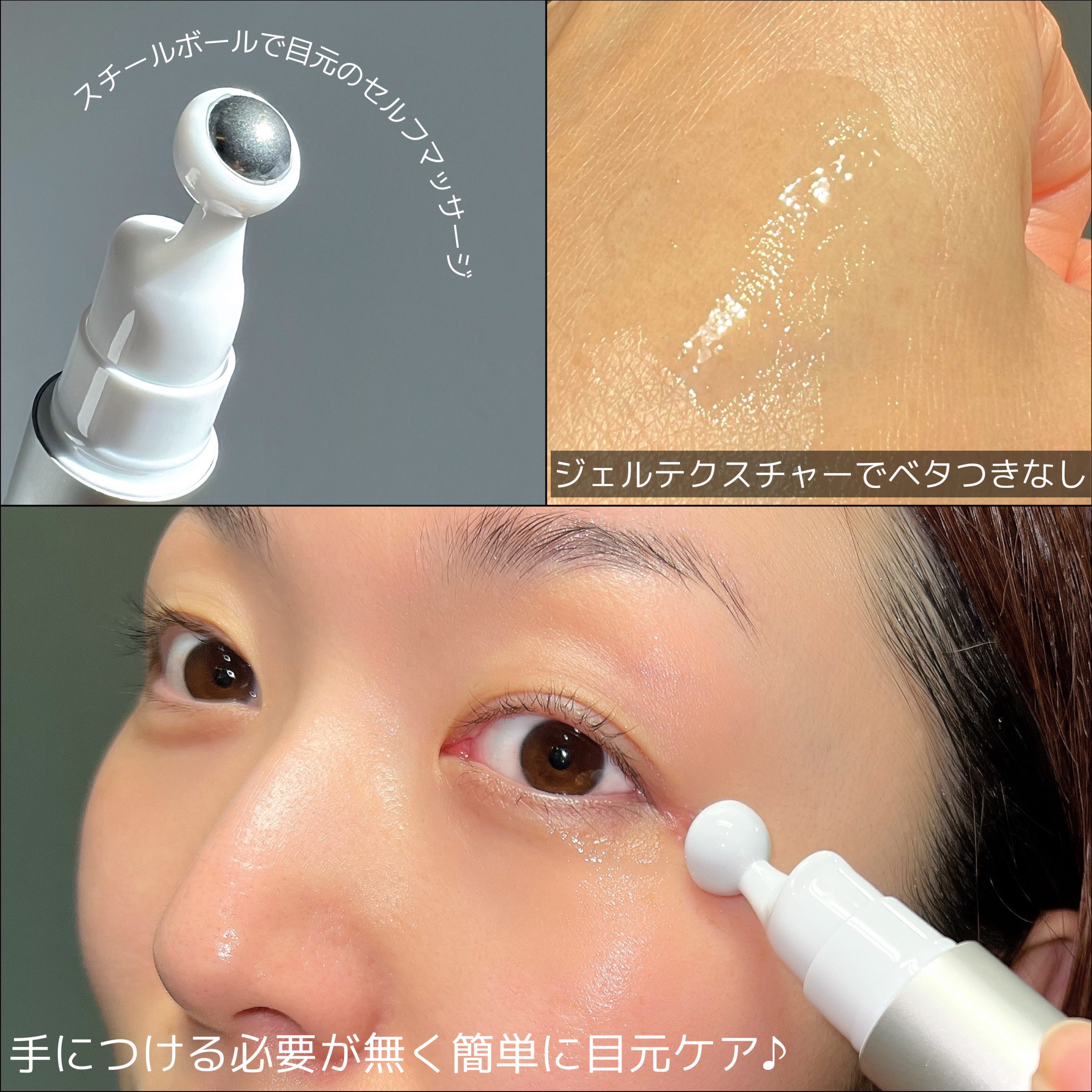 緩いテクスチャー 伸び馴染みよく、もっちりとした仕上がり 少しだけベタつきが気になりましたが、しっとり感など他は良かったです。 サラリとしたテクスチャー 手から零れる感じなのでお気をつけて 馴染みよくベタつきも気になりませんでした。 わぁぁなんかジェルみたいに少しブルっとしてる笑 アイセラム…普段使ってるのを想像してたからびっくりした🤣🤣笑