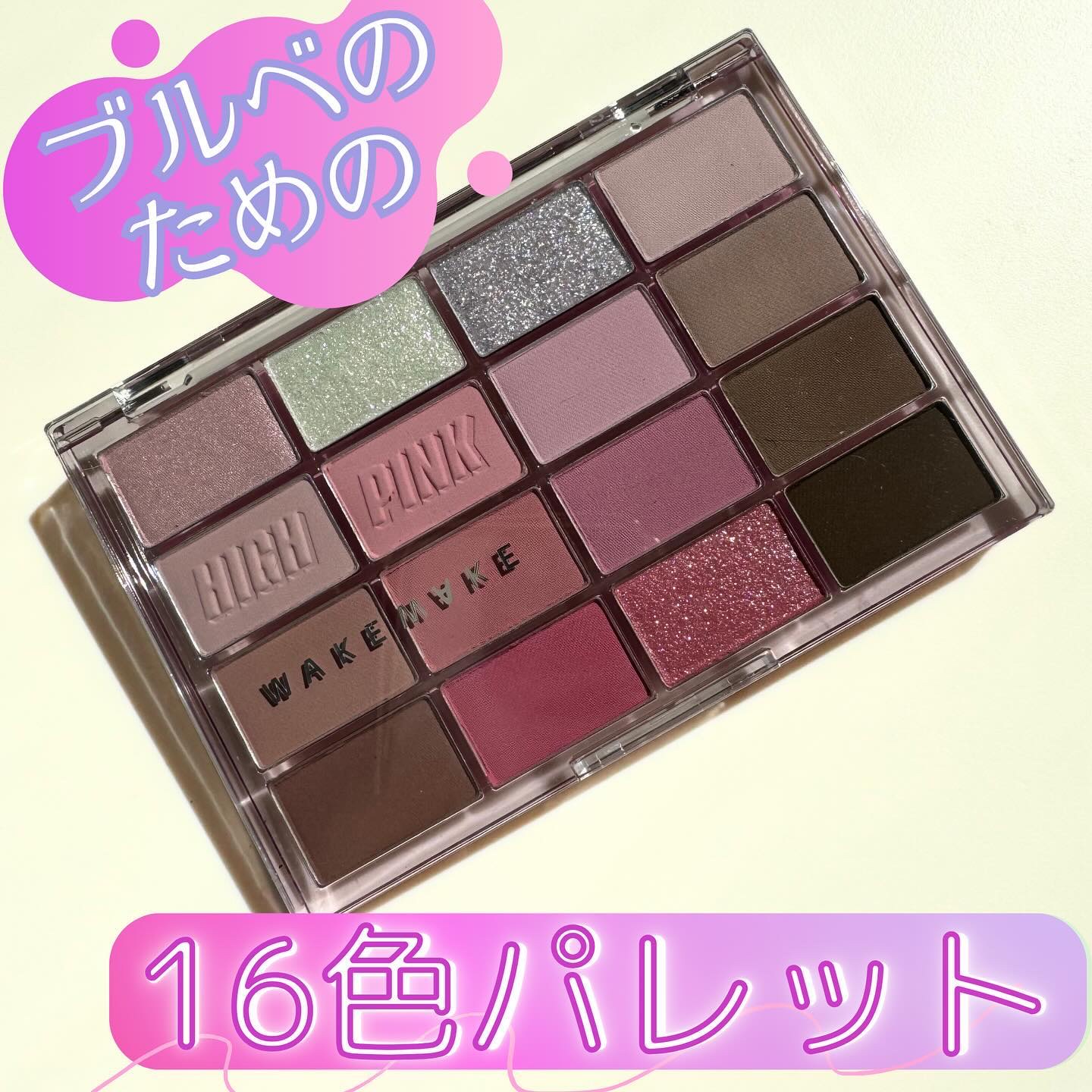 WAKEMAKE人気アイパレット 鮮やかなピンクカラー 色味は青みよりの鮮やかなピンクで鮮やかさが得意なブルベの方におすすめです。 粉質はしっとりしていて発色もいいです。粉飛びもしにくかったです。