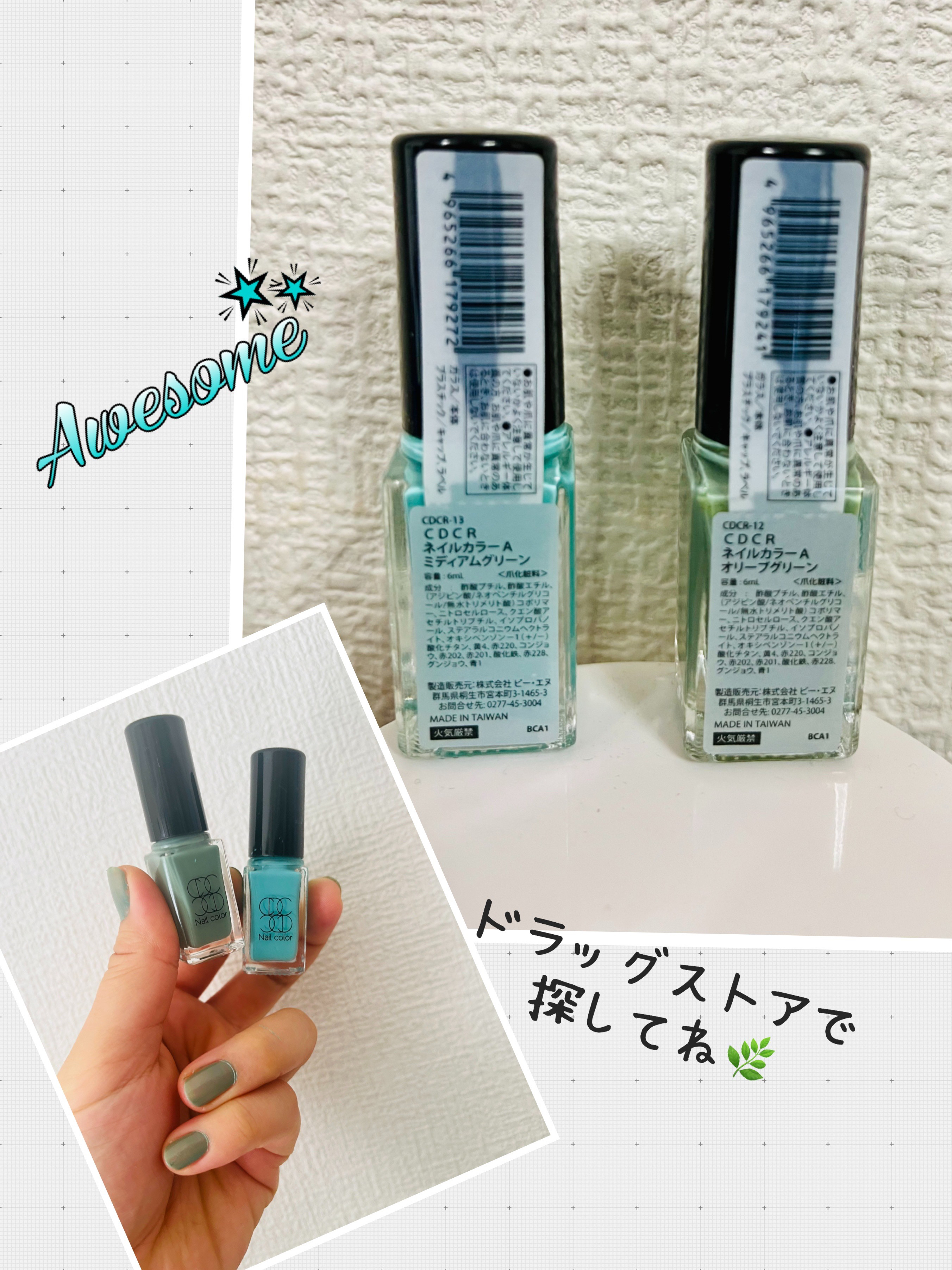 .*・゚CDCRネイルカラー.゚・*.本日は薬局で購入したちゅるんとするプチプラネイルをご紹介します👏🏻👏🏻全然有名じゃないけど、これCANMAKEと並ぶ隠れた名品です、、《商品詳細》❥ビー・エヌCDCRネイルカラーシルバー/オリーブグリーン...