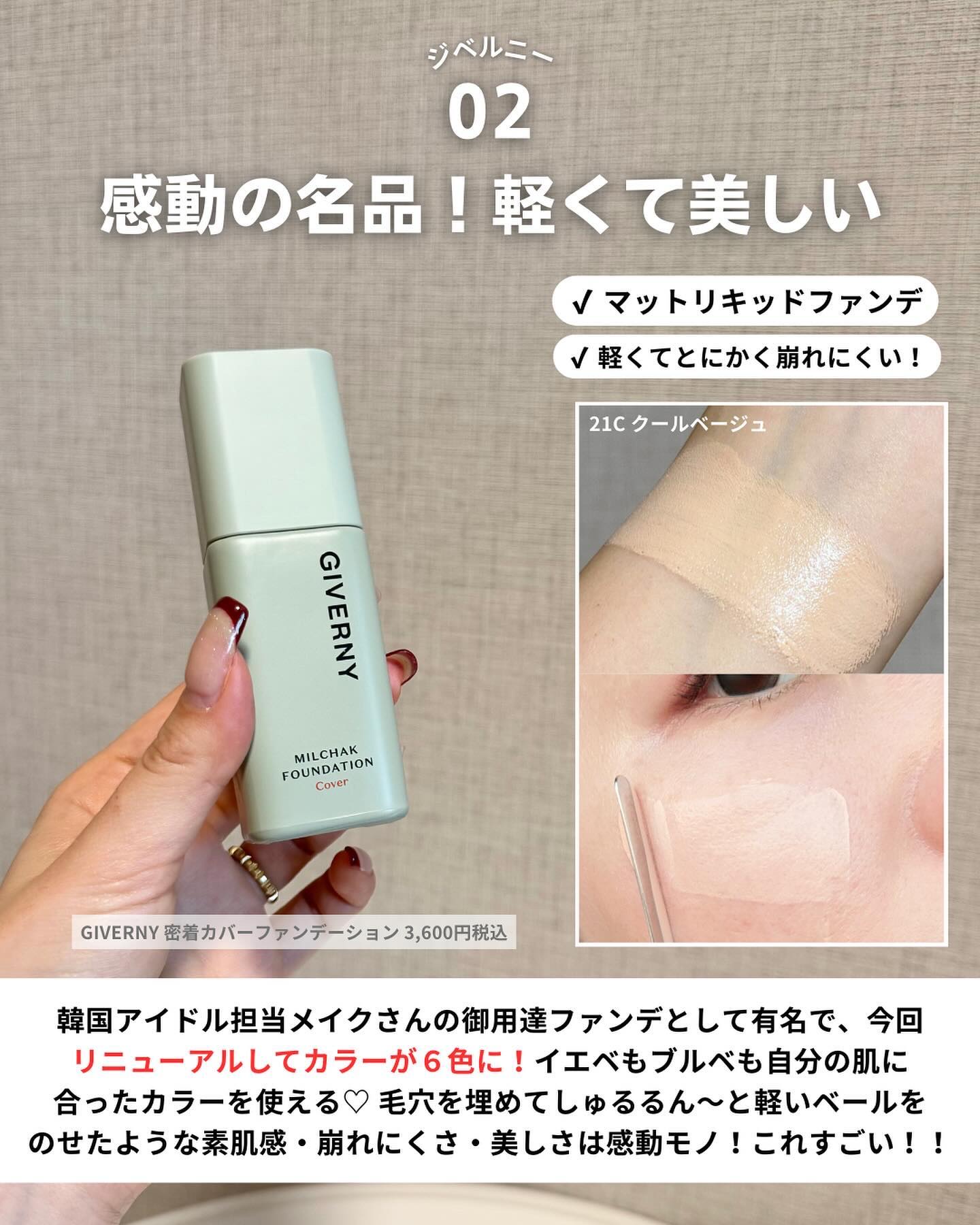 Qoo10総合1位👑の実力派ファンデ📣⌇GIVERNYジベルニー密着カバーファンデーション韓国メイクサロンでお馴染みのリキッドファンデ️️で、長時間ヨレにくい密着力と自然なカバー力が魅力💚スキル要らずの軽やかな使い心地で、肌なじみが良く明るい...