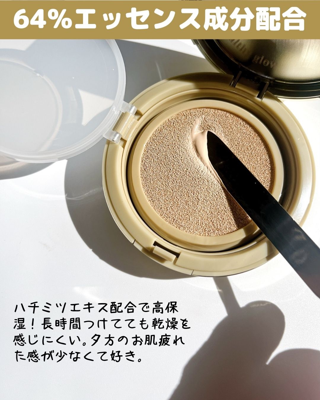 じゅわっとうるおいのあるテクスチャー つや感が綺麗でべたつかない仕上がり ロイヤルゼリー、プロポリスエキス はちみつエキスで蜜光肌を叶えてくれる SPF50+ PA++ マスクにもつきにくいし崩れにくい