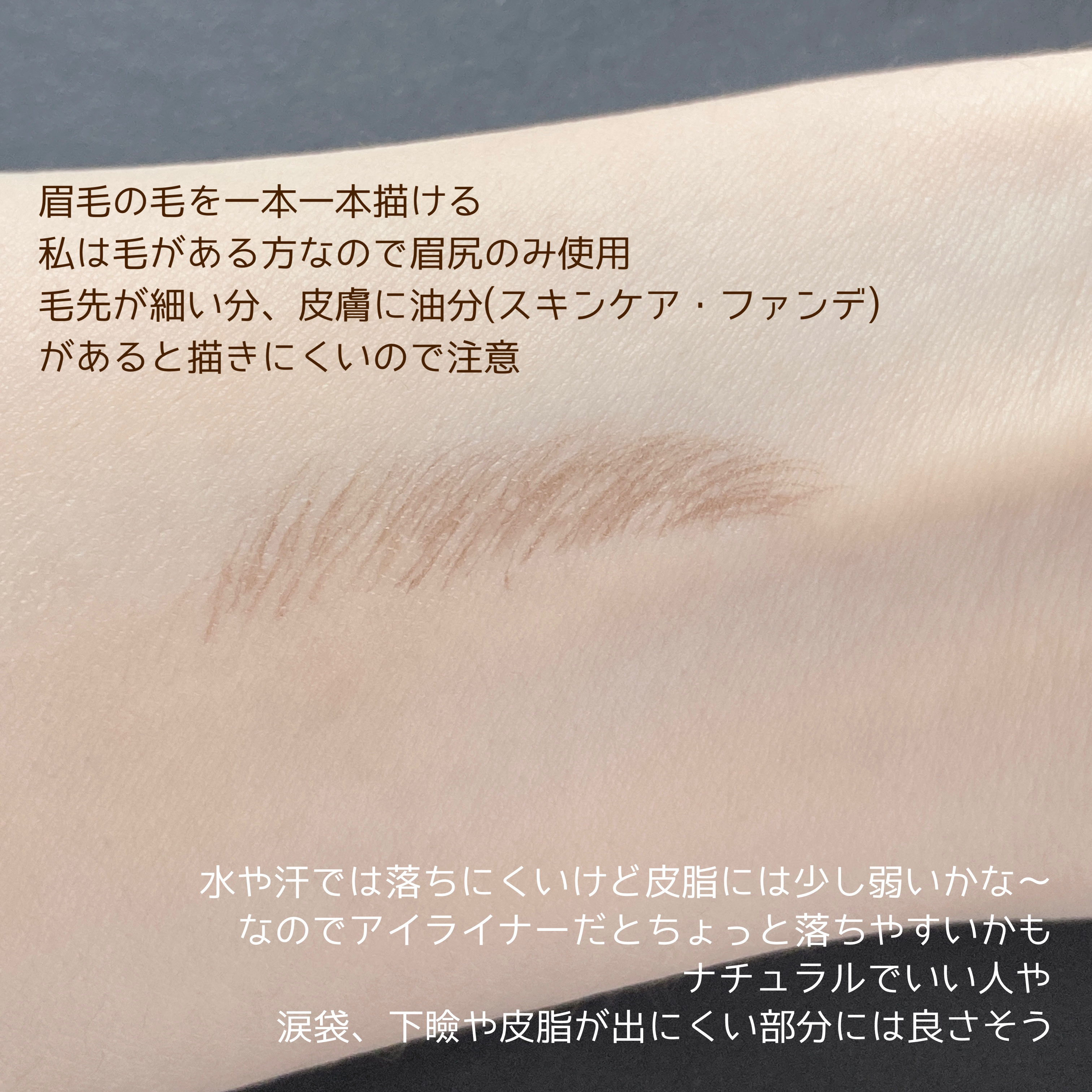 muiceシリライナー04ビターブラウンリップス購入品ペン先が細い細くも描けるし太くも描けるコシがあって描きやすい使いやすい筆色、ビターブラウンちょっと薄めだけどほどよい濃さで良き♪薄いから涙袋の影にも使えそう。。。使っていないけど😅眉毛には...