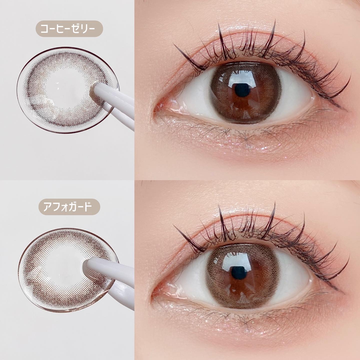 キャンマジ新色出たよ💕 馴染む立体感がヨジャドルっぽくて新色の中で1番よく使ってるカラー。 どんなメイクとも相性がいいので使いやすいです! 着色直径よりも体感大きめに感じるのも🙆🏻♀️ オレンジ感の少ないブラウンだから口紅やチーク次第で幼くも大人っぽくもなれる。 浮かない太めフチで可愛いさ溢れてます✨ レンズ単体だとめちゃくちゃピンクなのかなと思ったけど着けたら馴染みました💕 パキッとしないのでほわほわしたピンクが好きな人やラメメイクが好きな人にもおすすめ◎