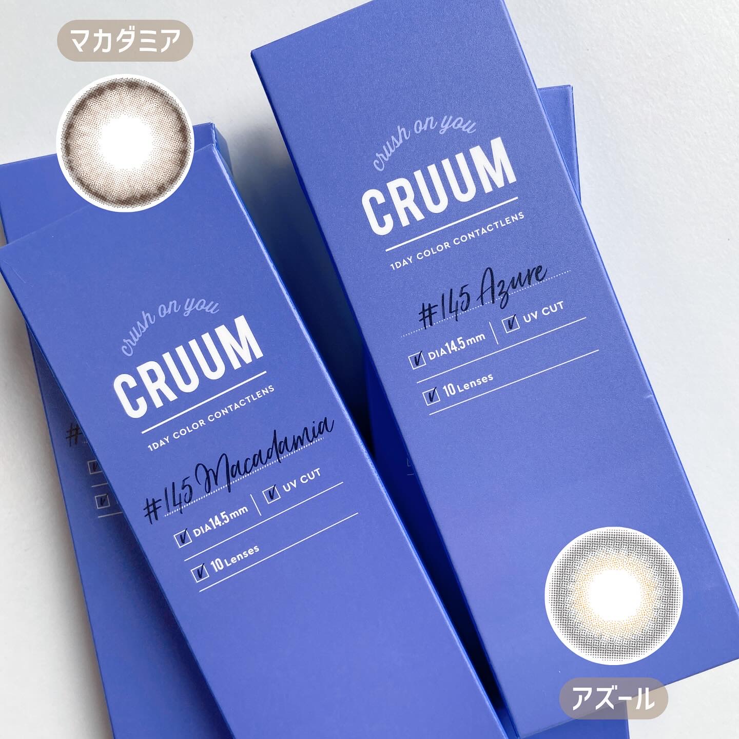 ヨジャドルのような瞳になれるデザインが魅力的なクルームシリーズ!アズールはブルーとグレーの透明感が唯一感を生み出す絶妙なカラコン♡ 装用していて特に違和感は感じられませんでした。また乾燥もそこまで感じられませんでしたが、長時間装用の際は目薬があるとより安心かなと思いました。 ブルーグレーが魅力的な素敵カラコンでした!
