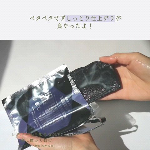 | 少し厚めのやわらかく、 真っ黒なシートマスク! サイズ感も大きめで顔全体を覆えるよ☺️ | 詳細を見る | |
