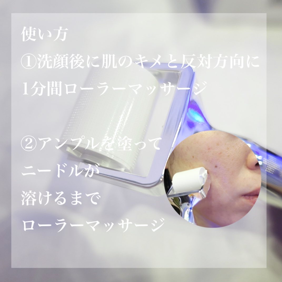 一般金属針と違い、EGFダーマニードルは、微細刺激😌 週1回の使用がおすすめの、スペシャルケアアイテム💗 1分コロコロした後も、まだニードルが残っているので、美容液を伸ばしてさらにコロコロ
