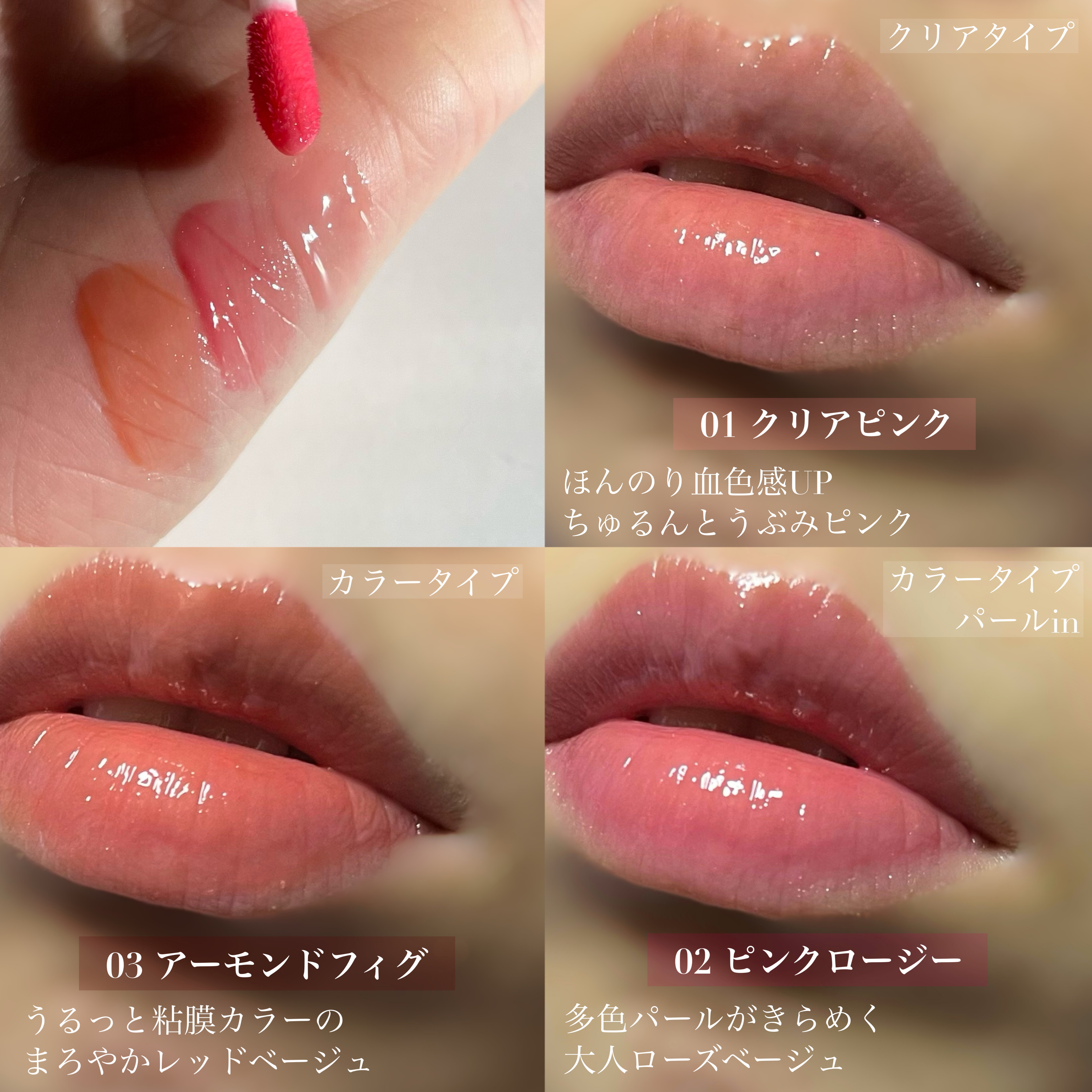 \エリザベス リップボムプランパーセラム/01クリアピンク02ピンクロージー03 アーモンドフィグ50カンパリピンク51クリアシャンパンお上品なカラーでフィグよりはアプリコットとかのがしっくりくるかもツヤツヤするけどベタベタしない仕上がりが好...