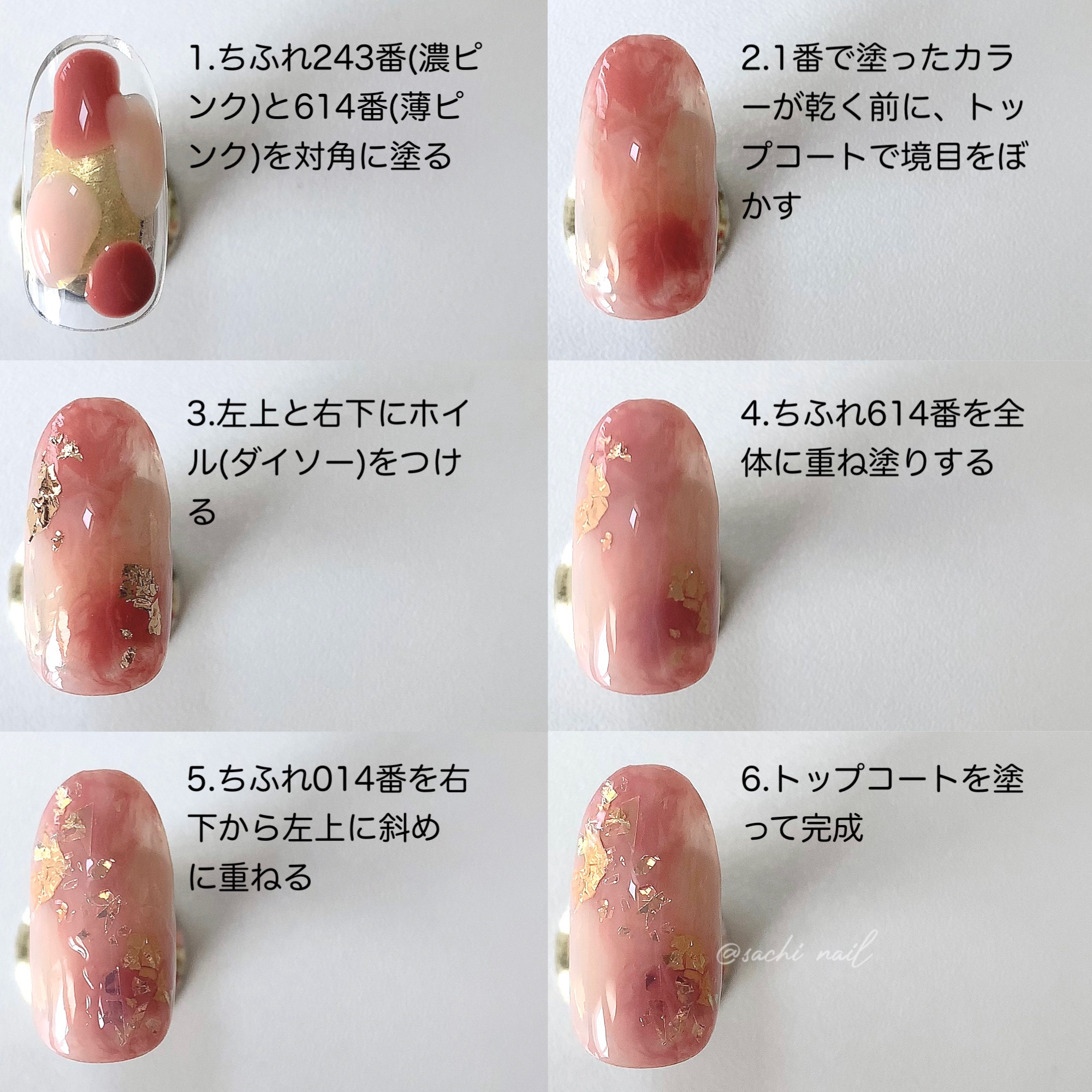 ワンカラーでも指ごとに色を変えるだけでオシャレに見えます💕 画像のようにゴールドラインとストーンを少し足すだけで華やかさがアップ🥰 何度かご紹介したことのあるスポンジで作るグラデーションです✨ スポンジを使うことで境目が綺麗に馴染んでくれます💕 アルミホイルの上でブラウンとトップコートを1:1くらいで混ぜたものを、トップコートのハケに取って3箇所に塗るだけ👌 事前に混ぜたものを塗ることで、爪の上でぼかすより簡単に出来ます💕 ベースカラーが乾く前に点置きしてぼかすことで綺麗にぼかせます✨ スピードが大事なので、使うポリッシュのキャップは全て開けておきましょう😊 天然石のラインはガタガタの方がより天然石っぽく見えるので、ラインを描くのが苦手な方でも大丈夫🙆♀️ 難しそうに見えて、やってみると意外と簡単に出来ます♡