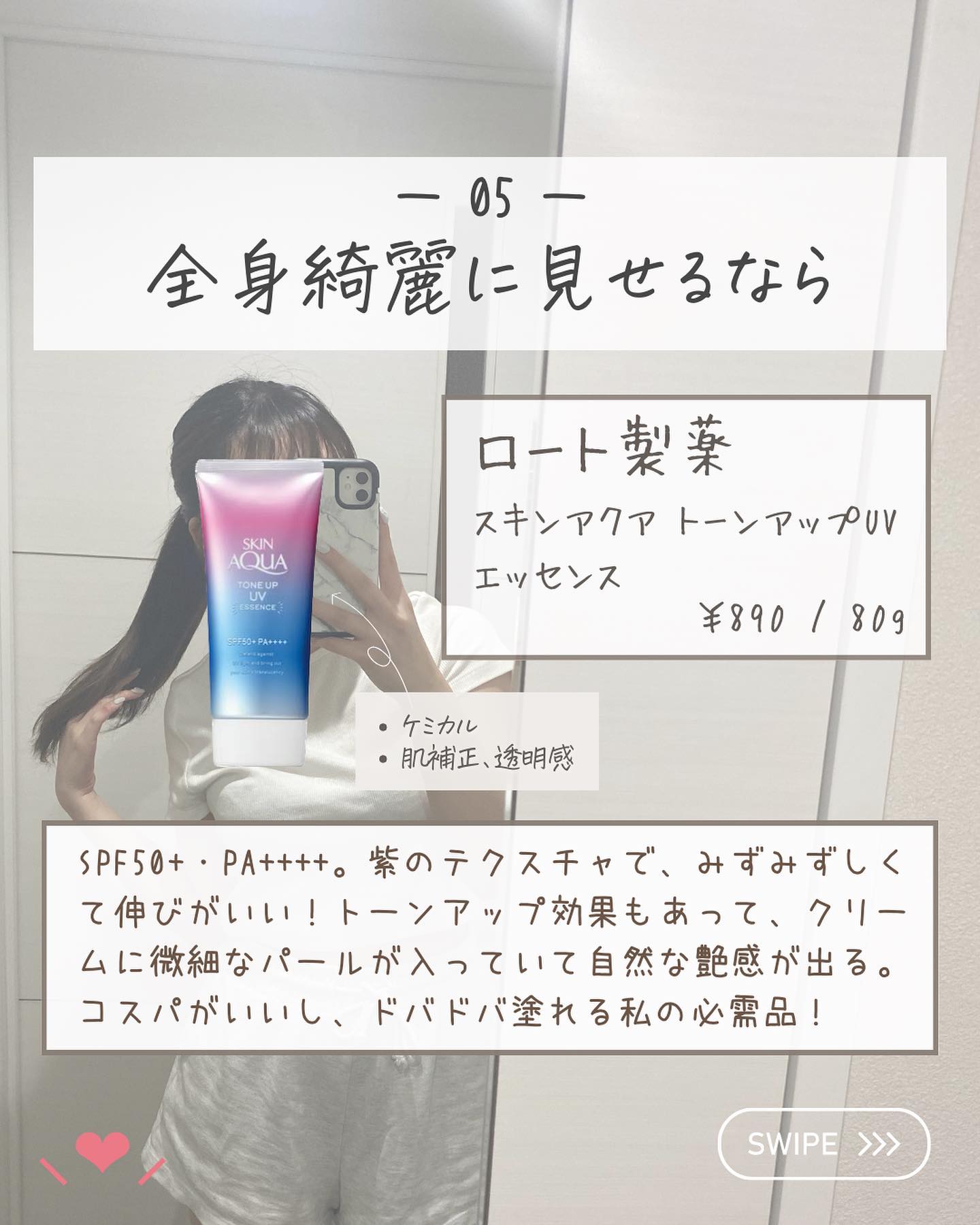 オリーブヤングで5年間連続で日焼け止め部門受賞した日焼け止め🥂 無機系(紫外線散乱剤)の日焼け止めらしく肌で光を跳ね返して紫外線が肌に吸収されないようにするそう✨ クリームのようなテクスチャー✨するする伸びて馴染むとトーンアップ*して*メイクアップ効果による