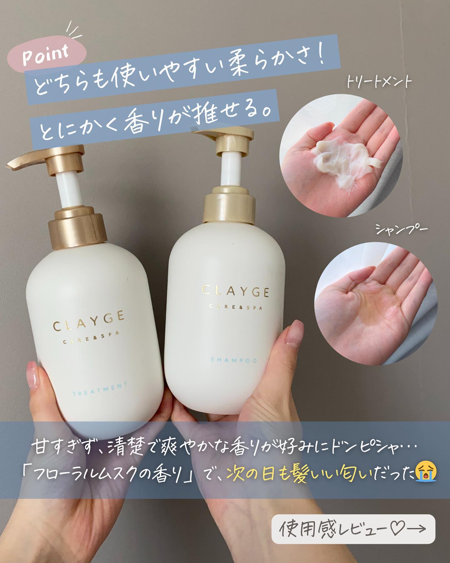 しっとりまとまるシャントリがCLAYGEより登場🫶 2種のクレイ配合で地肌や髪の汚れをスッキリ✨️ コラーゲンも配合されているのでしっかりダメージ補修もできます🪞 ホワイトジャスミン&ムスクの香りも程よい甘さで好き😘