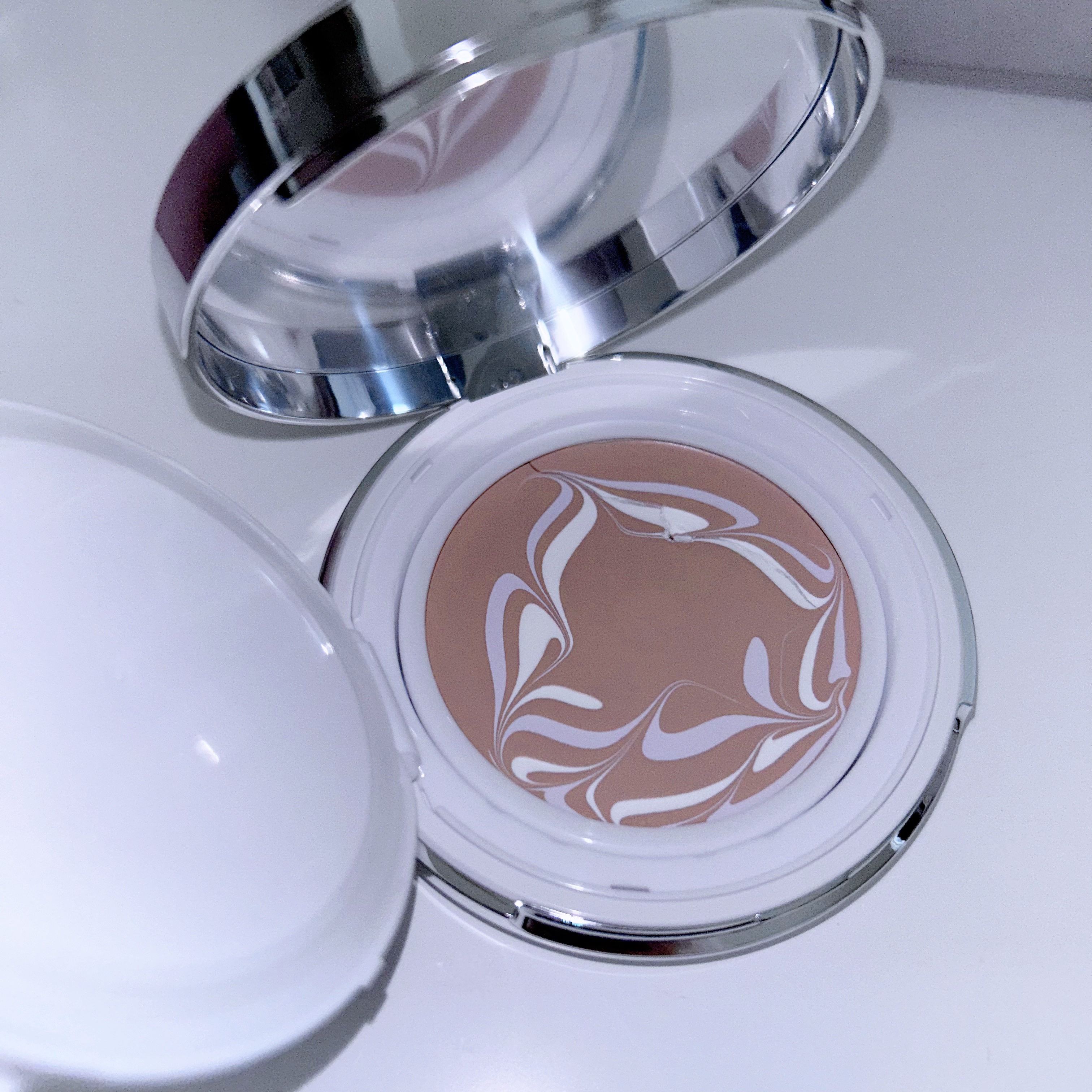 ⚪️Dr.Althea⚪️ダブルセラムバームファンデーション【21ピンクアイボリー】✴️ファンデーションのマーブル機能で簡単にツヤ美肌メイク❕パッケージは可愛い水色のコンパクト🩵マーブル模様のバームタイプのファンデ✨✅ホワイト(肌のトーンアッ...
