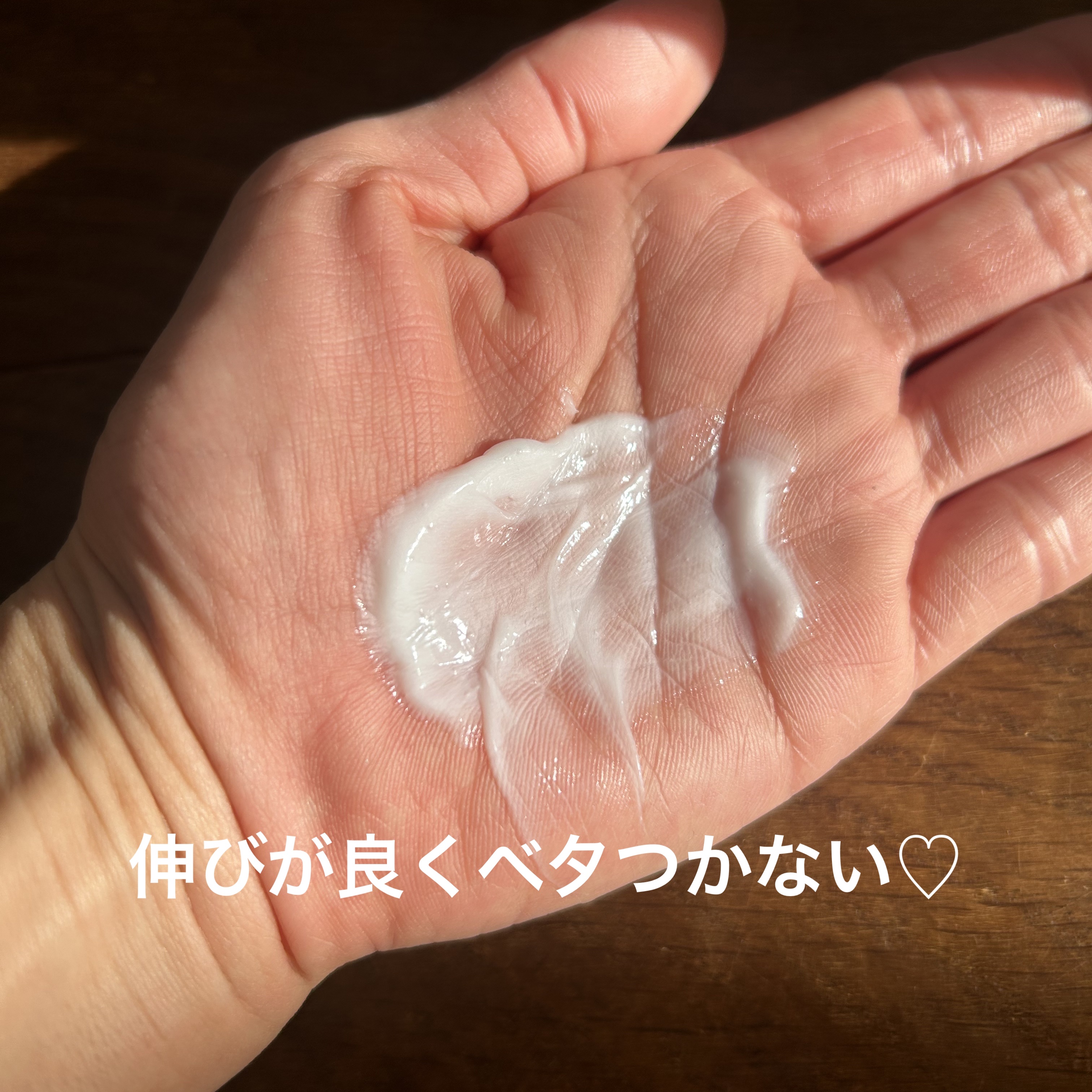 | テクスチャーは思っていたよりサラッとしていて、 のばしやすくべたつかない心地よい使用感。 | 詳細を見る | ||