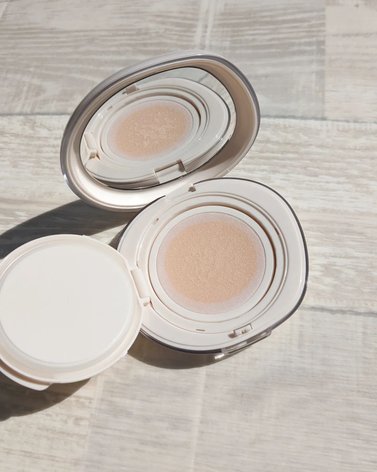 ひと塗りでピタッと付く、布の様なメッシュタイプのクッションファンデを使うのは初めて🔰 伸びが良く使い心地良いです👍✨ お色味は㉑㉓の2色。 私は㉑使用。 軽いテクスチャーで、カバー力◎