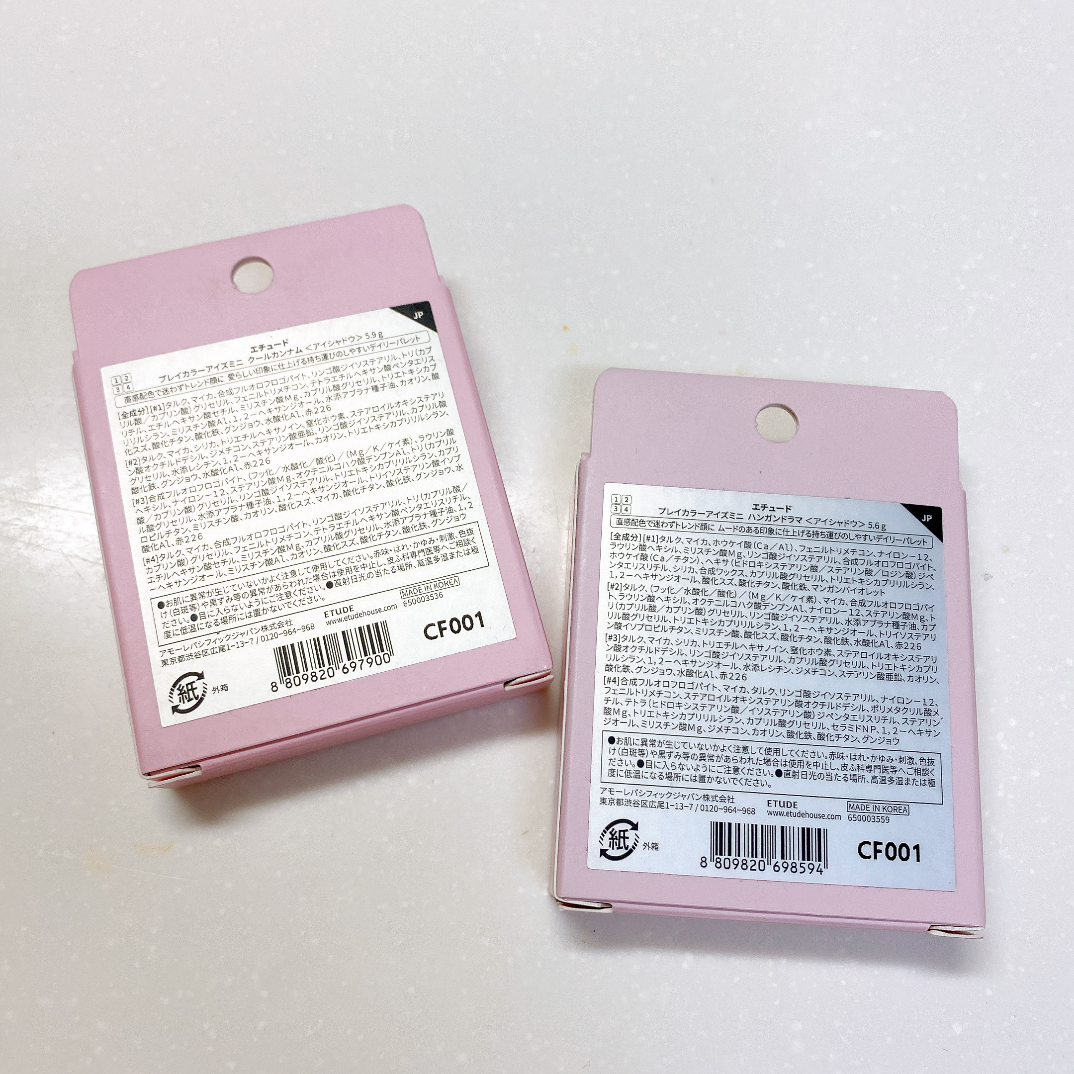 - ハンガンドラマ [#1] タルク、マイカ、ホウケイ酸(Ca/Al)、フェニルトリメチコン、ナイロン-12、ラウリン酸ヘキシル、ミリスチン酸Mg、リンゴ酸ジイソステアリル、合成フルオロフロゴパイト、ホウケイ酸(Ca/チタン)、ヘキサ(ヒドロキシステアリン酸/ステアリン酸/ロジン酸)ジペンタエリスリチル、シリカ、合成ワックス、カプリル酸グリセリル、トリエトキシカプリリルシラン、1,2-ヘキサンジオール、酸化スズ、酸化チタン、酸化鉄、マンガンバイオレット [#2] タルク、(フッ化/水酸化/酸化)/(Mg/K/ケイ素)、マイカ、合成フルオロフロゴパイト、ラウリン酸ヘキシル、オクテニルコハク酸デンプンAl、ナイロン-12、ステアリン酸Mg、トリ(カプリル酸/カプリン酸)グリセリル、リンゴ酸ジイソステアリル、水添アブラナ種子油、カプリル酸グリセリル、トリエトキシカプリリルシラン、1,2-ヘキサンジオール、トリイソステアリン酸イソプロピルチタン、ミリスチン酸、酸化スズ、酸化チタン、酸化鉄、水酸化Al、赤226 [#3] タルク、マイカ、シリカ、トリエチルヘキサノイン、窒化ホウ素、ステアロイルオキシステアリン酸オクチルドデシル、リンゴ酸ジイソステアリル、カプリル酸グリセリル、トリエトキシカプリリルシラン、1,2-ヘキサンジオール、水添レシチン、ジメチコン、ステアリン酸亜鉛、カオリン、酸化鉄、グンジョウ、水酸化Al、赤226 [#4] 合成フルオロフロゴパイト、マイカ、タルク、リンゴ酸ジイソステアリル、ナイロン-12、フェニルトリメチコン、ステアロイルオキシステアリン酸オクチルドデシル、ポリメタクリル酸メチル、テトラ(ヒドロキシステアリン酸/イソステアリン酸)ジペンタエリスリチル、ステアリン酸Mg、トリエトキシカプリリルシラン、カプリル酸グリセリル、セラミドNP、1,2-ヘキサンジオール、ミリスチン酸Mg、ジメチコン、カオリン、酸化鉄、酸化チタン、グンジョウ クールカンナム [#1] タルク、マイカ、合成フルオロフロゴパイト、リンゴ酸ジイソステアリル、トリ(カプリル酸/カプリン酸)グリセリル、フェニルトリメチコン、テトラエチルヘキサン酸ペンタエリスリチル、エチルヘキサン酸セチル、ミリスチン酸Mg、カプリル酸グリセリル、トリエトキシカプリリルシラン、ミリスチン酸Al、1,2-ヘキサンジオール、水添アブラナ種子油、カオリン、酸化スズ、酸化チタン、酸化鉄、グンジョウ、水酸化Al、赤226 [#2] タルク、マイカ、シリカ、トリエチルヘキサノイン、窒化ホウ素、ステアロイルオキシステアリン酸オクチルドデシル、ジメチコン、ステアリン酸亜鉛、リンゴ酸ジイソステアリル、カプリル酸グリセリル、水添レシチン、1,2-ヘキサンジオール、カオリン、トリエトキシカプリリルシラン、酸化鉄、グンジョウ、水酸化Al、赤226 [#3] 合成フルオロフロゴパイト、(フッ化/水酸化/酸化)/(Mg/K/ケイ素)、ラウリン酸ヘキシル、ナイロン-12、ステアリン酸Mg、オクテニルコハク酸デンプンAl、トリ(カプリル酸/カプリン酸)グリセリル、リンゴ酸ジイソステアリル、トリエトキシカプリリルシラン、カプリル酸グリセリル、水添アブラナ種子油、1,2-ヘキサンジオール、トリイソステアリン酸イソプロピルチタン、ミリスチン酸、カオリン、酸化スズ、マイカ、酸化チタン、酸化鉄、グンジョウ、水酸化Al、赤226 [#4] タルク、マイカ、合成フルオロフロゴパイト、リンゴ酸ジイソステアリル、トリ(カプリル酸/カプリン酸)グリセリル、フェニルトリメチコン、テトラエチルヘキサン酸ペンタエリスリチル、エチルヘキサン酸セチル、ミリスチン酸Mg、カプリル酸グリセリル、水添アブラナ種子油、1,2-ヘキサンジオール、ミリスチン酸Al、カオリン、酸化スズ、酸化チタン、酸化鉄、グンジョウ シブヤグルーヴ [#1] タルク、マイカ、リンゴ酸ジイソステアリル、合成フルオロフロゴパイト、トリ(カプリル酸/カプリン酸)グリセリル、フェニルトリメチコン、テトラエチルヘキサン酸ペンタエリスリチル、エチルヘキサン酸セチル、ミリスチン酸Mg、カプリル酸グリセリル、トリエトキシカプリリルシラン、水添アブラナ種子油、1,2-ヘキサンジオール、ミリスチン酸Al、酸化スズ、酸化チタン、酸化鉄 [#2] タルク、マイカ、ラウリン酸ヘキシル、合成フルオロフロゴパイト、リンゴ酸ジイソステアリル、カプリル酸グリセリル、トリエトキシカプリリルシラン、1,2-ヘキサンジオール、ジメチコン、酸化スズ、酸化チタン、酸化鉄、グンジョウ、水酸化Al、赤226、黄4 [#3] タルク、ポリプロピレン、合成フルオロフロゴパイト、ジフェニルシロキシフェニルトリメチコン、イソステアリン酸、ステアリン酸Mg、ジメチコン、トリイソステアリン酸ポリグリセリル-2、カプリル酸グリセリル、トリエトキシカプリリルシラン、1,2-ヘキサンジオール、マイカ、酸化鉄、酸化チタン [#4] 合成フルオロフロゴパイト、マイカ、(フッ化/水酸化/酸化)/(Mg/K/ケイ素)、ナイロン-12、ラウリン酸ヘキシル、リンゴ酸ジイソステアリル、