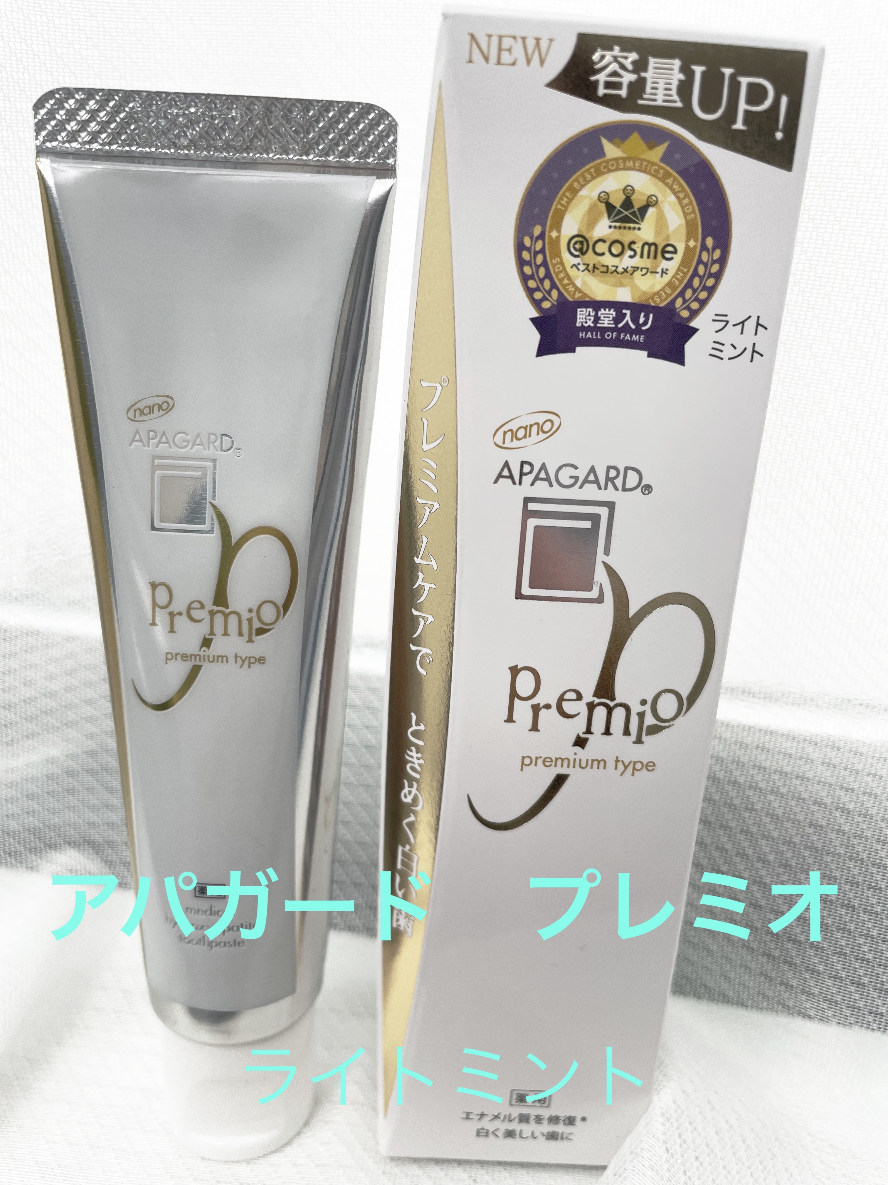 - 【医薬部外品】 独自成分「薬用ハイドロキシアパタイト」がエナメル質を整えてむし歯を予防。アパガードはエナメル質の健康を保つことで自然な白い歯に導く美白歯みがきブランド。アパガードプレミオは「薬用ハイドロキシアパタイト」を高配合(スタンダードタイプ比)。プレミアムケアでときめく白い歯に。 <ライトミント> ●サンギ独自の薬用成分ナノ粒子「薬用ハイドロキシアパタイト」を高配合したプレミアムタイプ。※Mプラス、スモーキン比 ●歯の再石灰化率、白色度もアップ。 ●歯垢を吸着除去し、歯のエナメル質の目に見えない傷を埋め、ミネラル欠損部(初期むし歯)を再石灰化するナノ<mHAP>の3つの働きで、むし歯を予防。 ●パール成分(加水分解コンキオリン液)配合。 <エクストラミント> ●強めのミントがお好みの方におススメ!ミント強めの「エクストラミント」フレーバー。 ●サンギ独自の薬用成分ナノ粒子「薬用ハイドロキシアパタイト」を高配合したプレミアムタイプ。※Mプラス、スモーキン比 ●歯垢を吸着除去、エナメル質表面の目に見えない傷を埋めてなめらかに、エナメル質から溶け出したミネラルを補給(再石灰化)する、という薬用ハイドロキシアパタイトの3つの作用でむし歯を予防。 ●パール成分(加水分解コンキオリン液)を追加したブライトニング処方