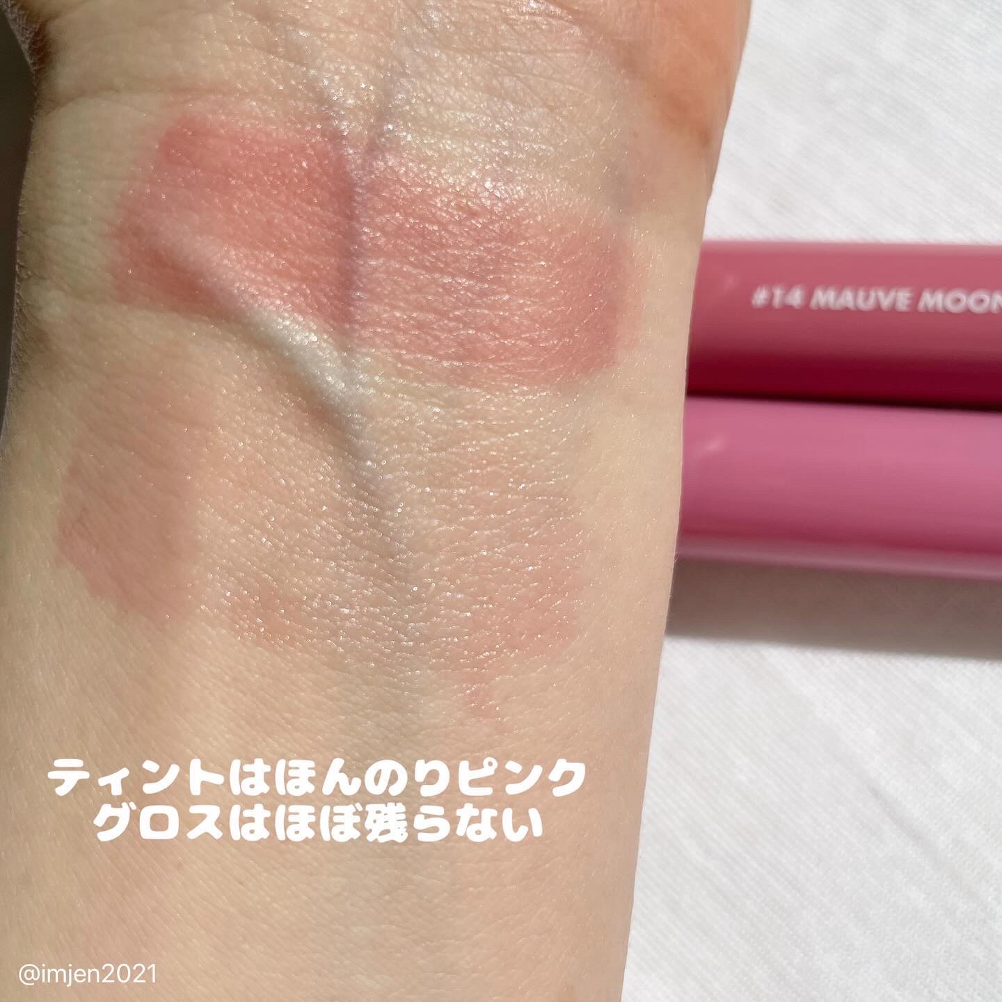 私はリピなし🥲可愛いのに残念だったティント…♡rom&ndグラスティングウォーターティント14MAUVEMOON¥1,320このシリーズのティントは初めて購入しましたがまず、色持ちはすごく良かったです!!飲んだり食べたりしてもきちんと色が残っ...