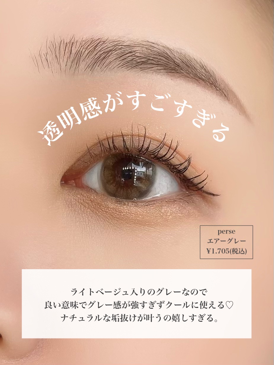 - ※2025年6月以降、商品パッケージ裏面・側面の一部表記を順次変更いたします。尚、これにかかる商品の交換・返品は承っておりません。 『perse(パース)』は、裸眼の美しさを引き出しながら、自由自在に印象の変化を楽しむ次世代カラーコンタクトレンズブランドとして誕生しました。 黒目でも茶目でも、どんな瞳のトーンにも似合う透け感発色と、光を集める繊細なグラデーションで、瞳の大きさを変えずにニュアンスチェンジ。 自分だけの特別な色が見つかる。 <Air Gray(エアーグレー)> DIA:14.2mm/着色直径:12.6mm 淡い光を宿すライトベージュに、ふわりと曖昧な空気を纏ったニュアンスグレー。 <Koala Gray(コアラグレー)> DIA:14.2mm/着色直径:13.6mm パールの光を閉じ込めた、ハートを射止めるドーリーグレー。 <Sunny Bear(サニーベア)> DIA:14.5mm/着色直径:13.8mm おひさま光を閉じ込めた、うるうるくりんっラブリーブラウン。 <Teddy Brown(テディブラウン)> DIA:14.2mm/着色直径:13.0mm さりげなく瞳の輪郭が際立つ、甘くイノセントな表情のダークアッシュブラウン。 <Nudie Beige(ヌーディーベージュ)> DIA:14.2mm/着色直径:12.6mm あたたかなブラウンヴェールの隙間から、きらめきを放つまばゆいライトベージュ。 <Palm Green(パームグリーン)> DIA:14.2mm/着色直径:13.0mm クリーンな雰囲気で澄んだ目元に、前向きな気持ちになれるフレッシュグリーン。 カラーコンタクトレンズの不適正使用による眼障害の危険性等などがあります。 ●コンタクトレンズは高度管理医療機器です。不十分な洗浄・消毒など不適切なケアや、長時間・交換期間を超えた装用により、アレルギー性結膜炎、角膜感染症、角膜潰瘍等の重篤な眼障害が発生する危険性があります ●ご使用前に取扱説明書を確認してください 使用上の留意事項 ●眼科医院等を受診してからお求めください ●眼に異常を感じたら直ちにレンズ使用を中止し、お近くの眼科等で診察を受けてください ●医師の指示にしたがってご使用ください ●コンタクトレンズを装用する場合、自覚症状がなくても、眼科医院等での定期検査を受けてください ●レンズに不具合がある場合は使用しないでください