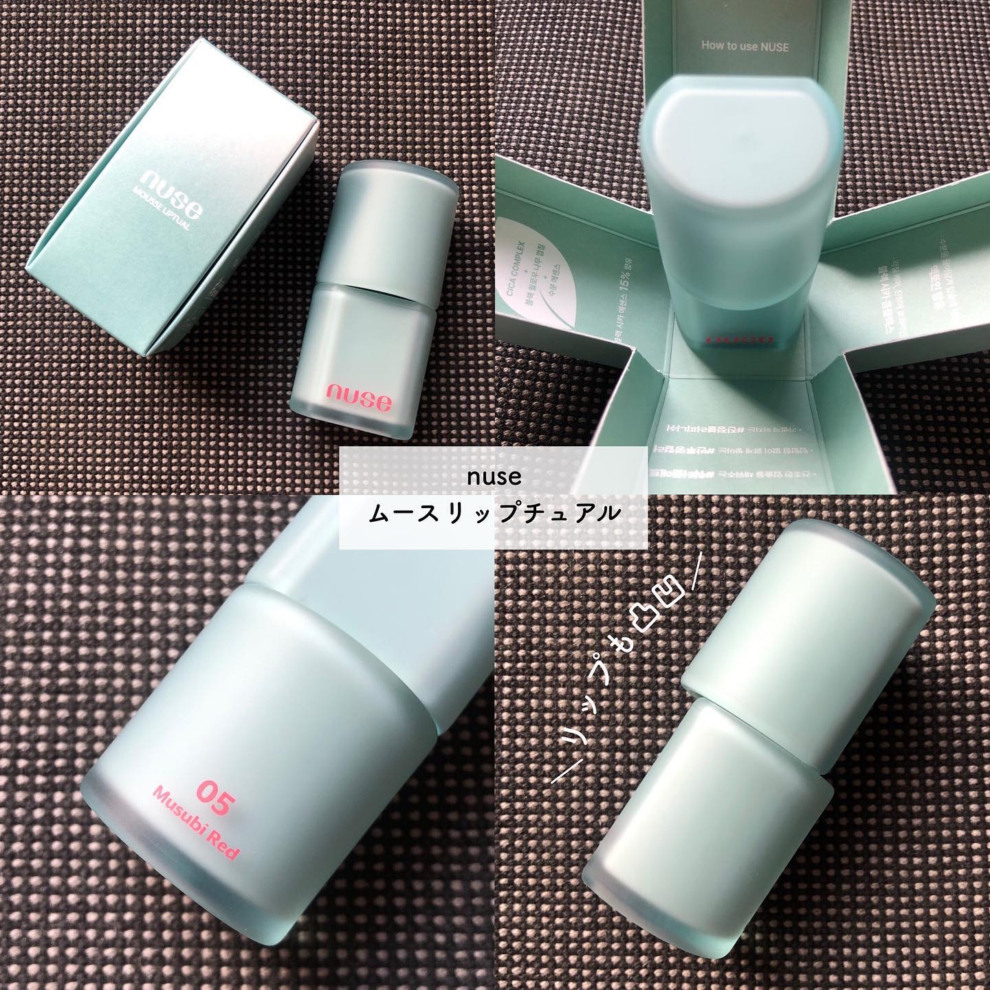肌に馴染むカラーが揃い♡ 血色感や透明感は足すけど素肌っぽいような、ナチュラルなのにきちんと、垢抜け引き算メイクってもしやnuseで叶うのでは...なんて思っています。 ふんわり柔らかい。 でもマットじゃないんだ、しっとり。なムースリップチュアル。カラーリップバームより発色してティントよりナチュラルな感じ! 保湿促進・乾燥改善・鎮静効果などに特化した成分が配合されケアしながらチークメイク。少量でよく伸びてしっとり自然な発色で肌の色にカラーが溶け込んでくれるからチーク難しいぞという方にもおすすめです。