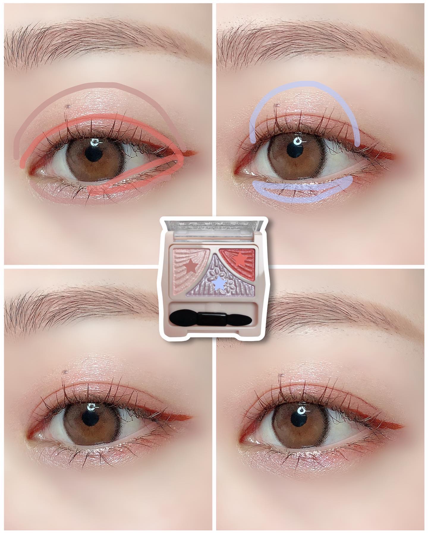 - パウダーなのにみずみずしい♥ 自然な立体感をつくりだす3色アイシャドウパレット 仕上げのコートで、ジューシー感&モチUP! メインカラー&ラインカラーはフィッティングオイル配合のしっとりパウダーで、 まぶたに吸いつくように溶け込み、ジューシーコートスフレで覆うことによって、 濡れたようにツヤめく愛されまぶたで透明感のある目元を演出します。