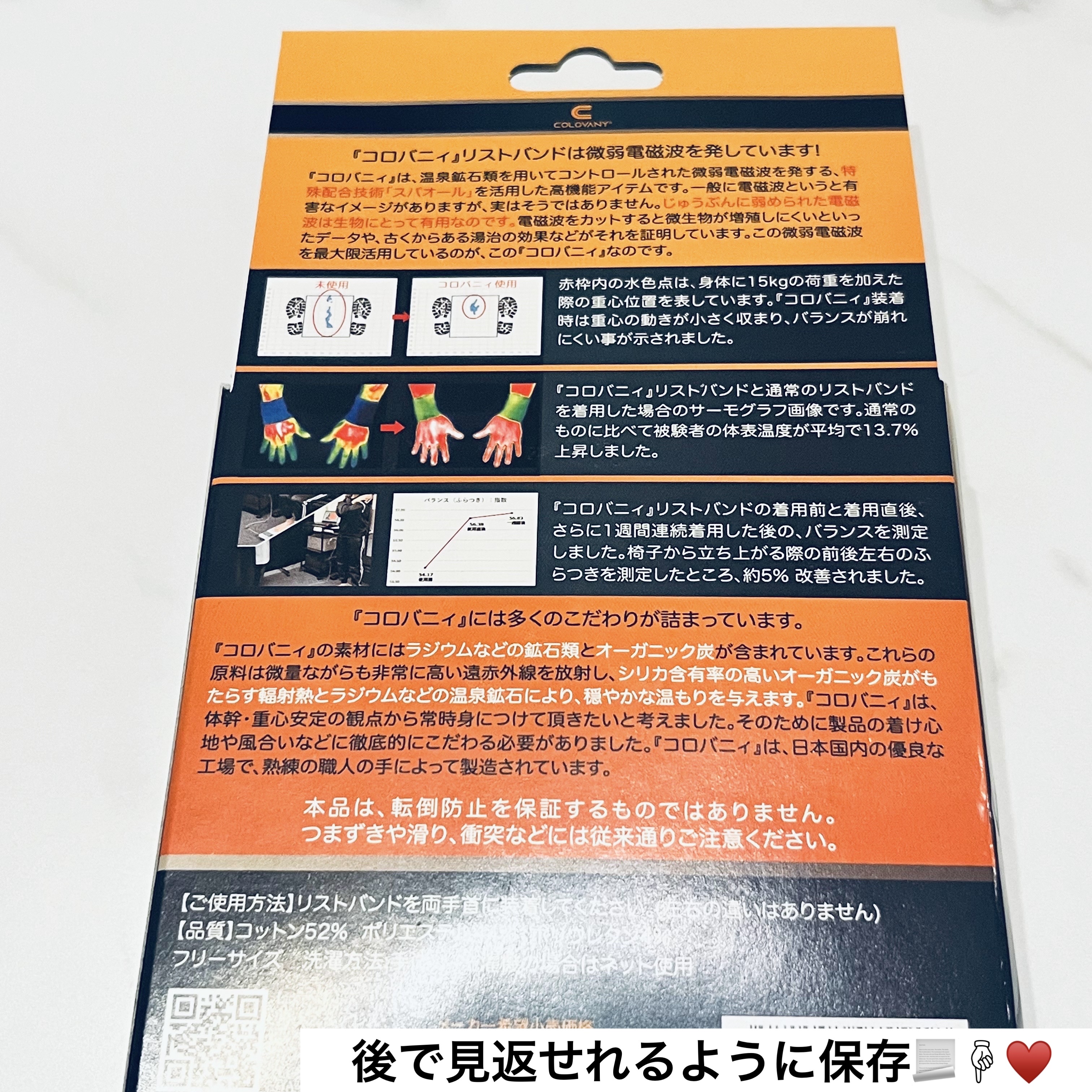 リストバンドの生地に含まれたラジウム等の温泉鉱石が穏やかに 輻射熱を発するから、手首につけてるだけでポカポカあたたかくて気持ちいいです☀ 結構すぐに温かさを感じます。指先まで暖かくなって、外したあともまだ暫くポカポカしてて凄いなって感じてます♨ 手首に跡が残るけど、冷え性なので、つけて寝ると寝付きがいいように感じます♥ 裏側のプツプツがちょっと痒くなることがあるから、裏向きに着けてみたけど、それでも暖かさを感じました! 身体の重心安定用粉体組成物を使用 (特許番号6802940号)しているから、体幹・重心も安定するみたいです♪ 日本製だし、ネットに入れて洗濯機で洗えます。