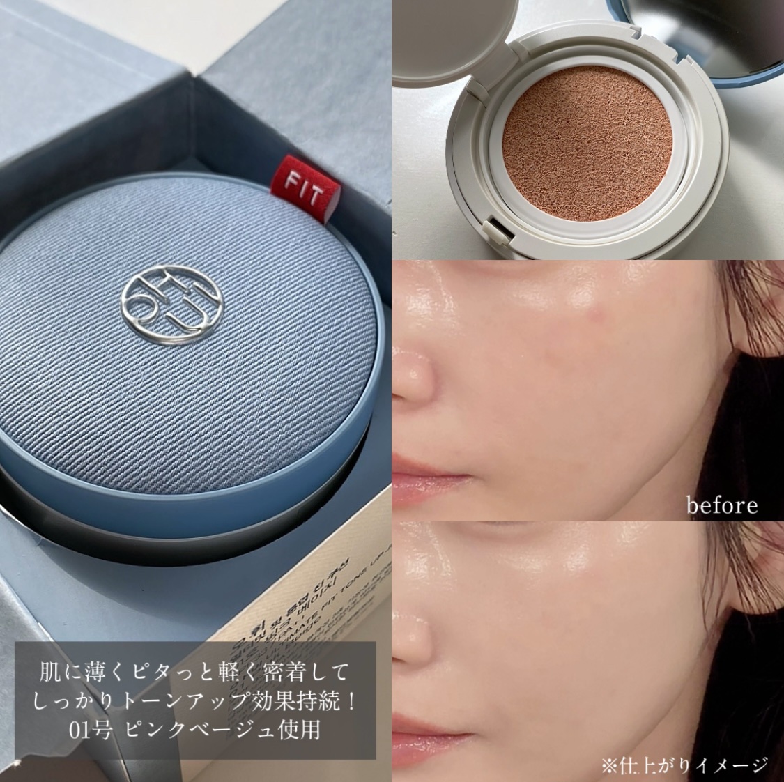 デニムが肌にフィットするように肌になじんでくれるクッションファンデ🤍 水分感たっぷりのテクスチャーでツヤツヤの透明肌仕上げに🌟 気になる肌ムラをカバーしつつも厚塗り感がなくセミマットな仕上がり✨