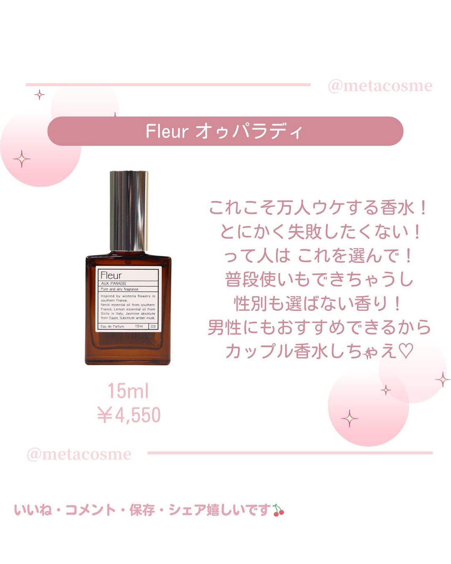 | 香水ランキング第4位 | THE 女の子!って感じの香りですし、そんなに強い香りではないので普段使いしやすいです🙆♀️ | 詳細を見る | |
