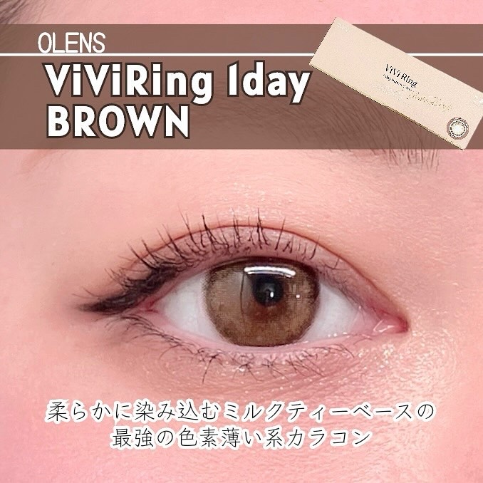 - ■OLENS ViVi Ring(オーレンズビビリング) 韓国カラコン業界の話題のブランド『OLENS(オーレンズ)』の日本正式承認商品シリーズ。世界中から注目を浴びるグループ「NewJeans (ニュージーンズ)」がイメージモデル。韓国でも長年大人気のベストセラーシリーズ*。くっきりめのぼかしフチと発色の良いミルクティーカラーが瞳にちゅるん感と透明感を演出してくれるカラコンです。ロマンチックな目元に。*当社ブランド内比較 ■使い方 コンタクトレンズは高度管理医療機器です。必ず眼科医の処方に従って購入してください。 ■使用上の留意事項 コンタクトレンズは高度管理医療機器です。眼科医の指導に従い装用期間を厳守し、正しくお使いください。眼の定期検査を必ず受けてください。添付文書を必ず読み、取扱方法、装用時間を守って正しくお使いください。少しでも異常を感じたら、直ちに眼科医の検査を受けてください。