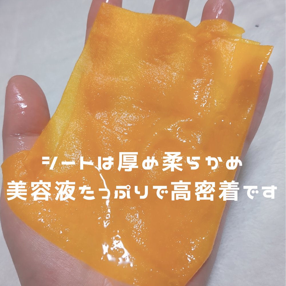 | スキンケアランキング第44位 | シートがみかん色でびっくり! とろっとろの液が含まれていて 貼り付けたらぴたーっとくっついてすごく気持ちいい! | 詳細を見る | |