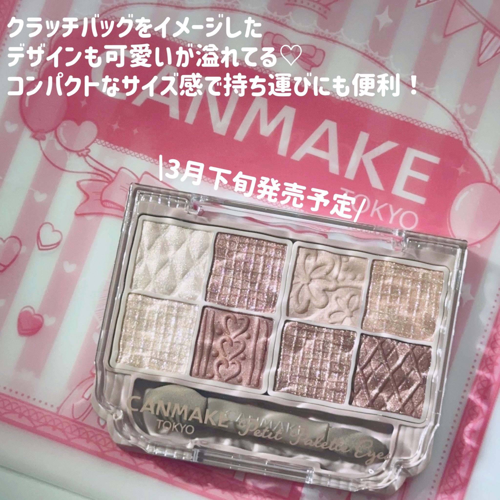 - 持ち歩ける多色パレットがキャンメイクから登場! 捨て色なしの8色入り&チップ付! 「持ち歩けること」や「外出先でもメイク直しができること」を重視した多色パレット。 持ち運びやすいサイズ感なのに、贅沢に8色入りです。 さらに便利なダブルエンドチップまで! マット×パール×ラメなど、組み合わせ方はあなたの自由! 自分好みのアイメイクを楽しめます。